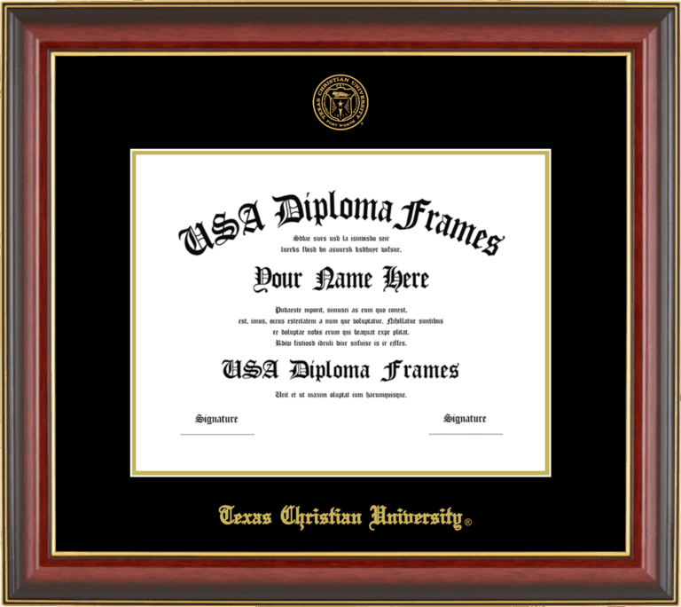 Want to explore more styles? Browse our full range of diploma frame layouts, or visit the Texas Christian University to view options available for your school. Looking for a fully personalized design? Try our custom Frame Builder and create a frame that’s uniquely yours.