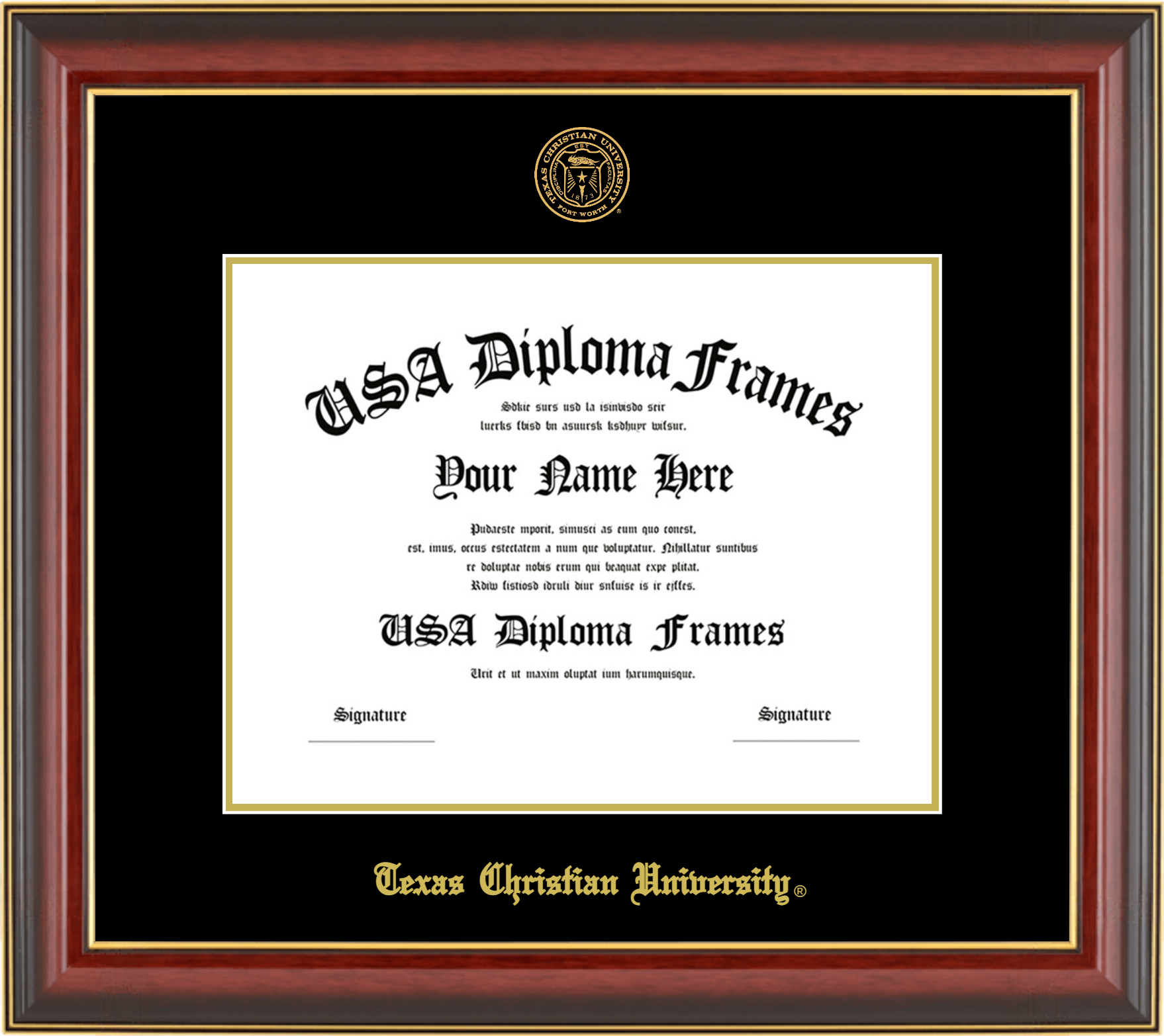 Texas Christian University Diploma Frame – TCU – Cherry Mahogany Gold Trim Glossy – Black and Gold Mat