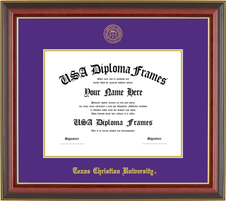 Want to explore more styles? Browse our full range of diploma frame layouts, or visit the Texas Christian University to view options available for your school. Looking for a fully personalized design? Try our custom Frame Builder and create a frame that’s uniquely yours.