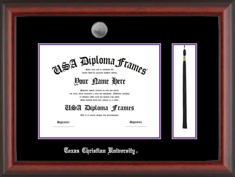 Want to explore more styles? Browse our full range of diploma frame layouts, or visit the Texas Christian University to view options available for your school. Looking for a fully personalized design? Try our custom Frame Builder and create a frame that’s uniquely yours.
