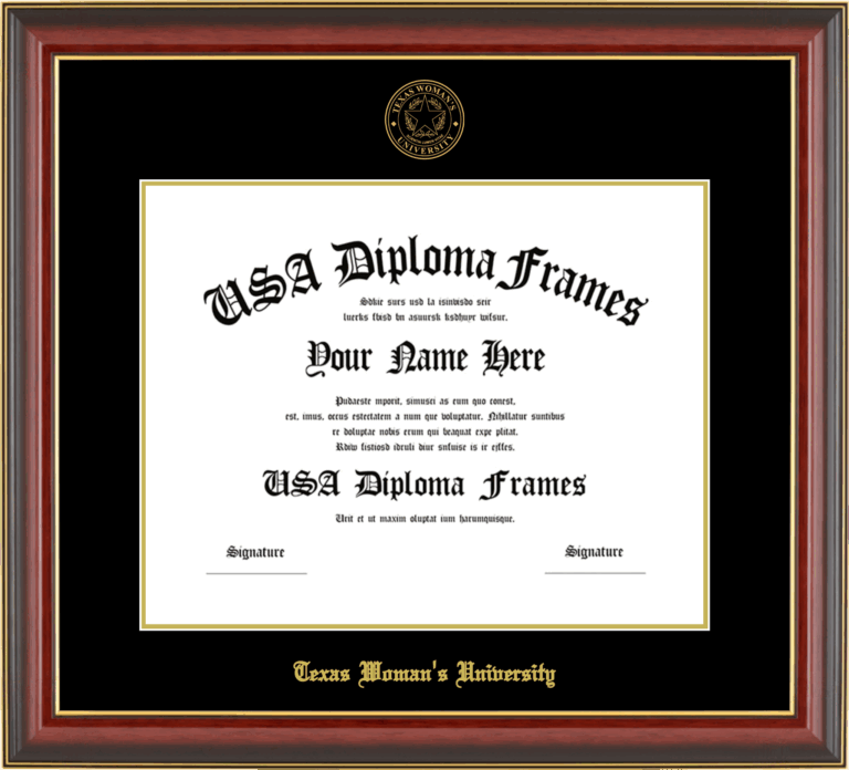 Want to explore more styles? Browse our full range of diploma frame layouts, or visit the Texas Woman's University to view options available for your school. Looking for a fully personalized design? Try our custom Frame Builder and create a frame that’s uniquely yours.