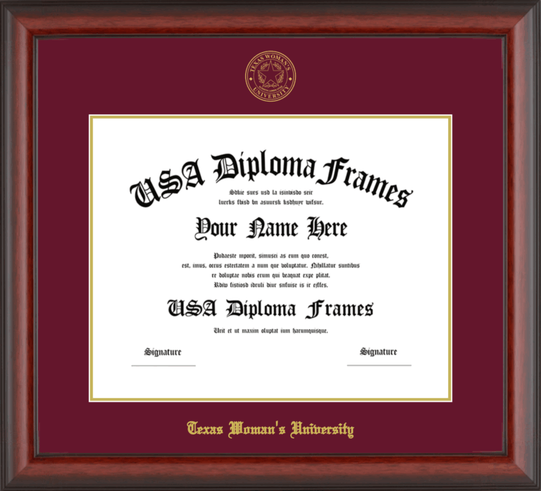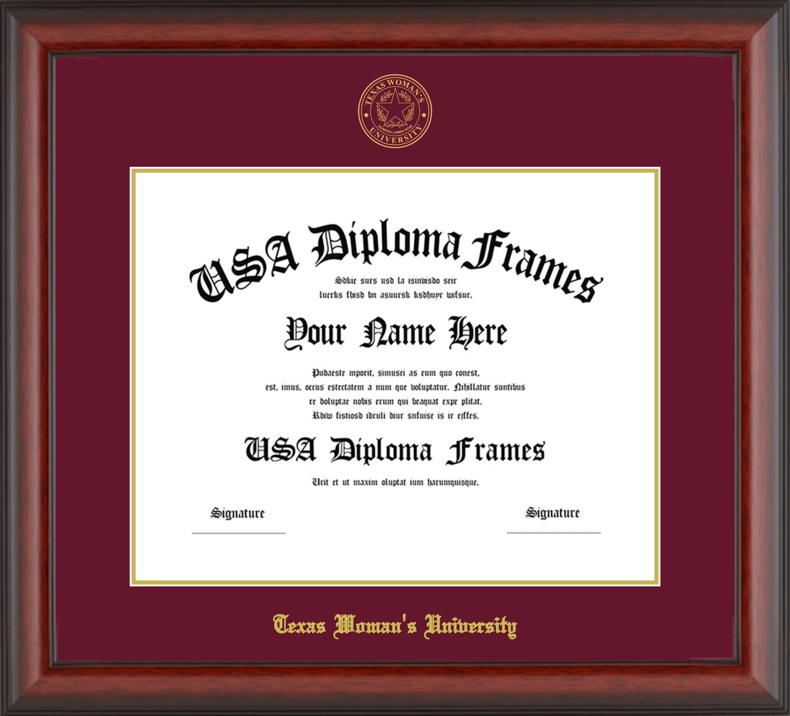 Texas Woman’s University Diploma Frame – Cherry Mahogany Matte – Maroon and Gold Mat