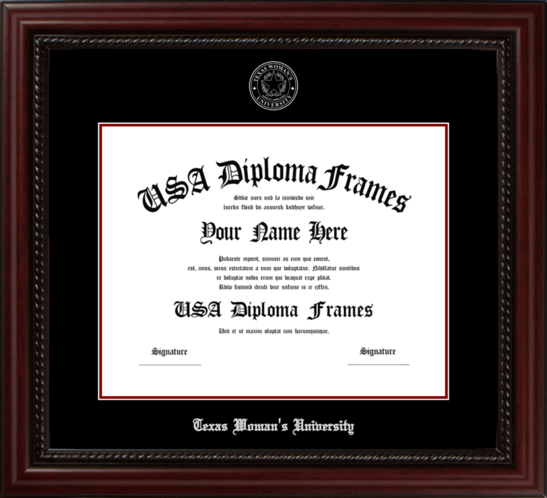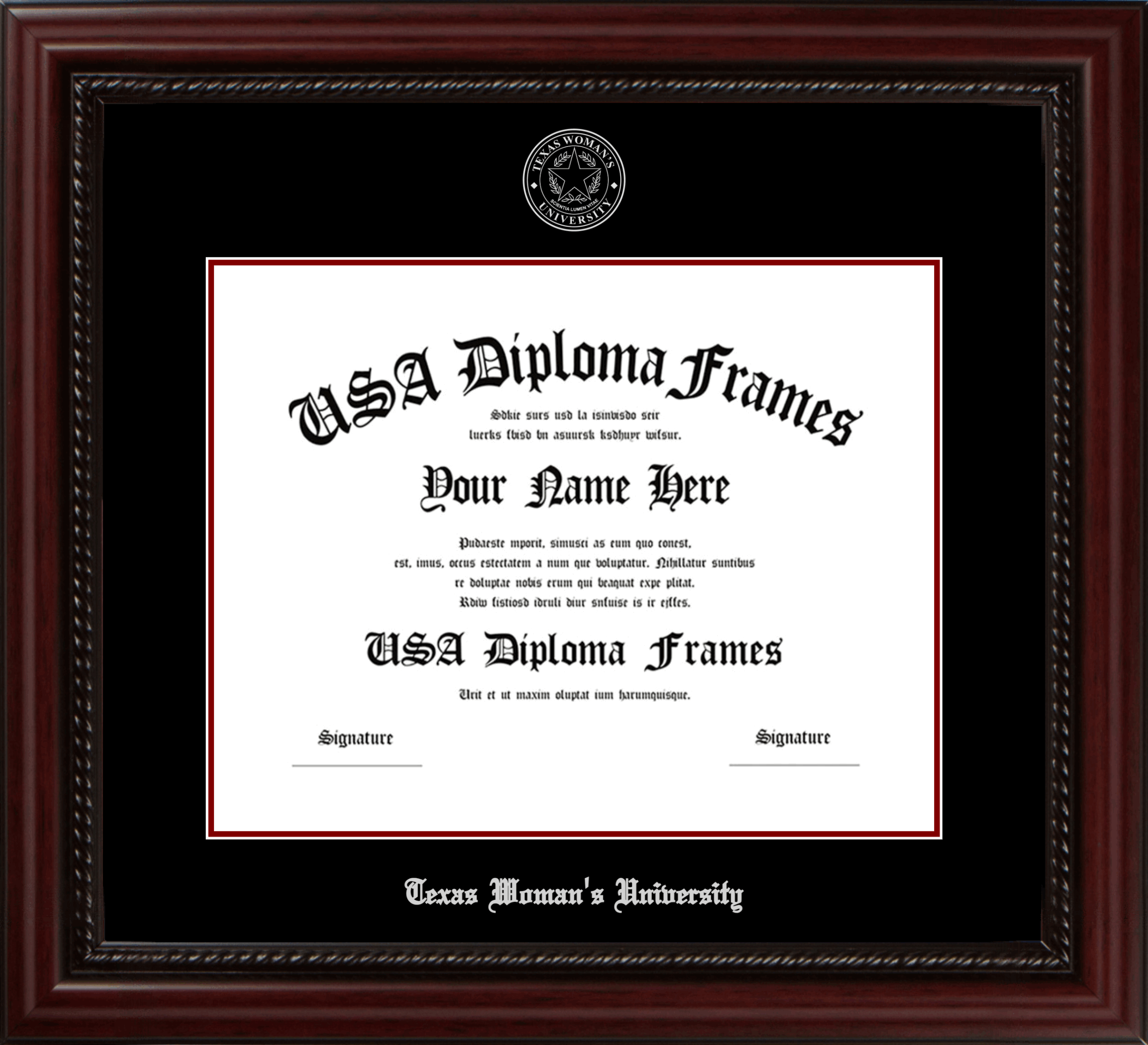 Texas Woman’s University Diploma Frame – Executive Cherry Rope – Black and Maroon Mat