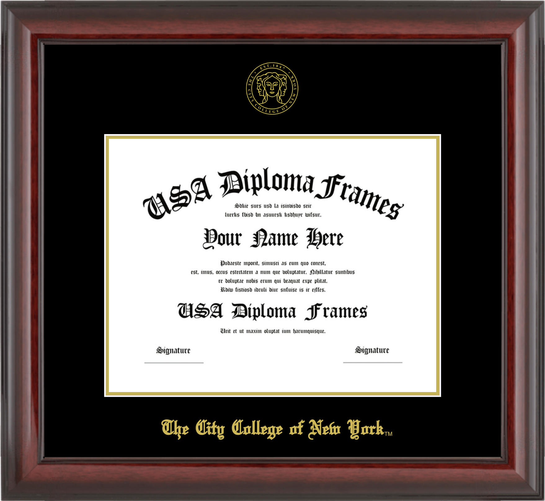 The City College of New York Diploma Frame – CCNY – Cherry Mahogany Glossy – Black and Gold Mat