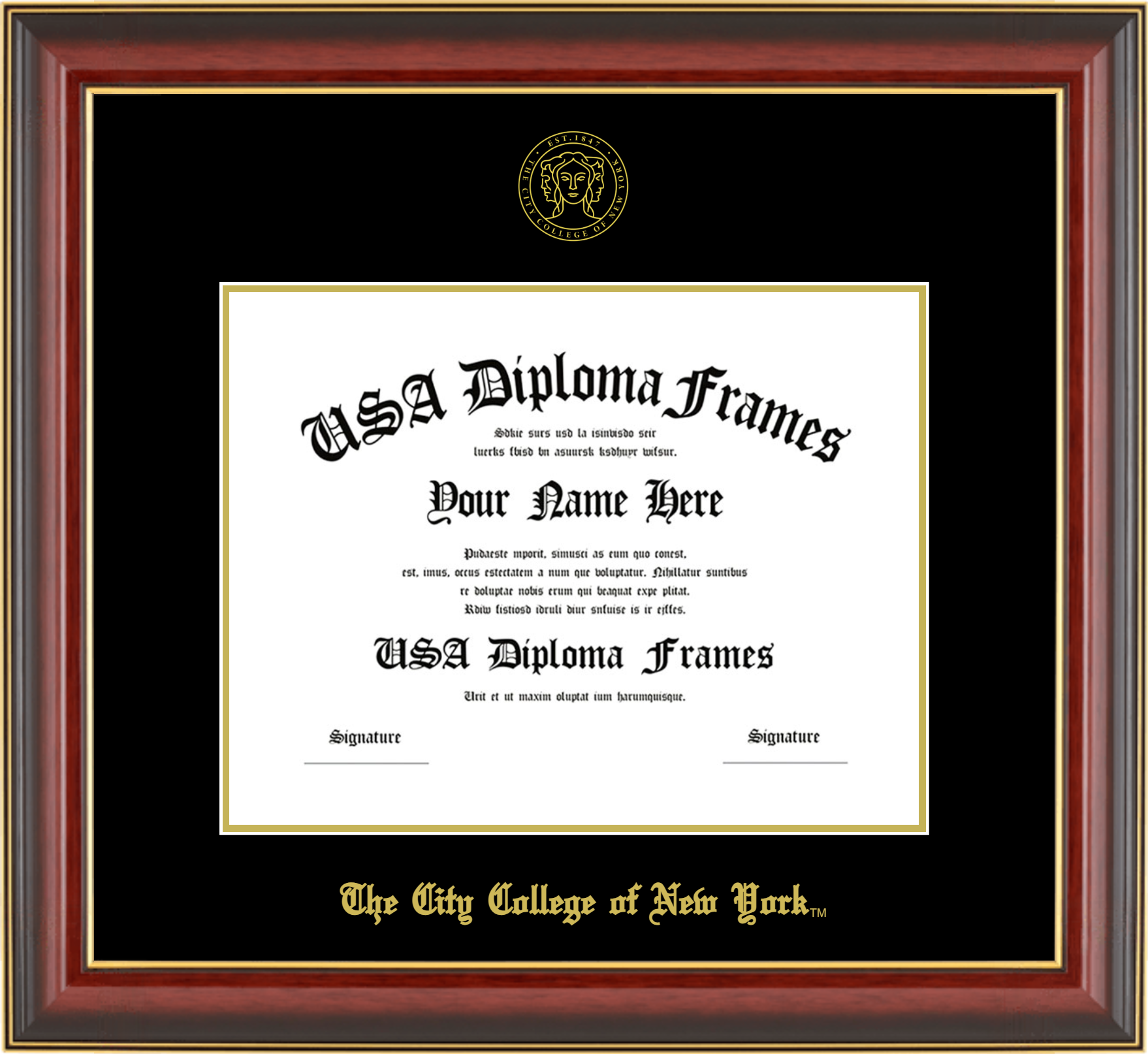 The City College of New York Diploma Frame – Cherry Mahogany Gold Trim Glossy – Black and Gold Mat