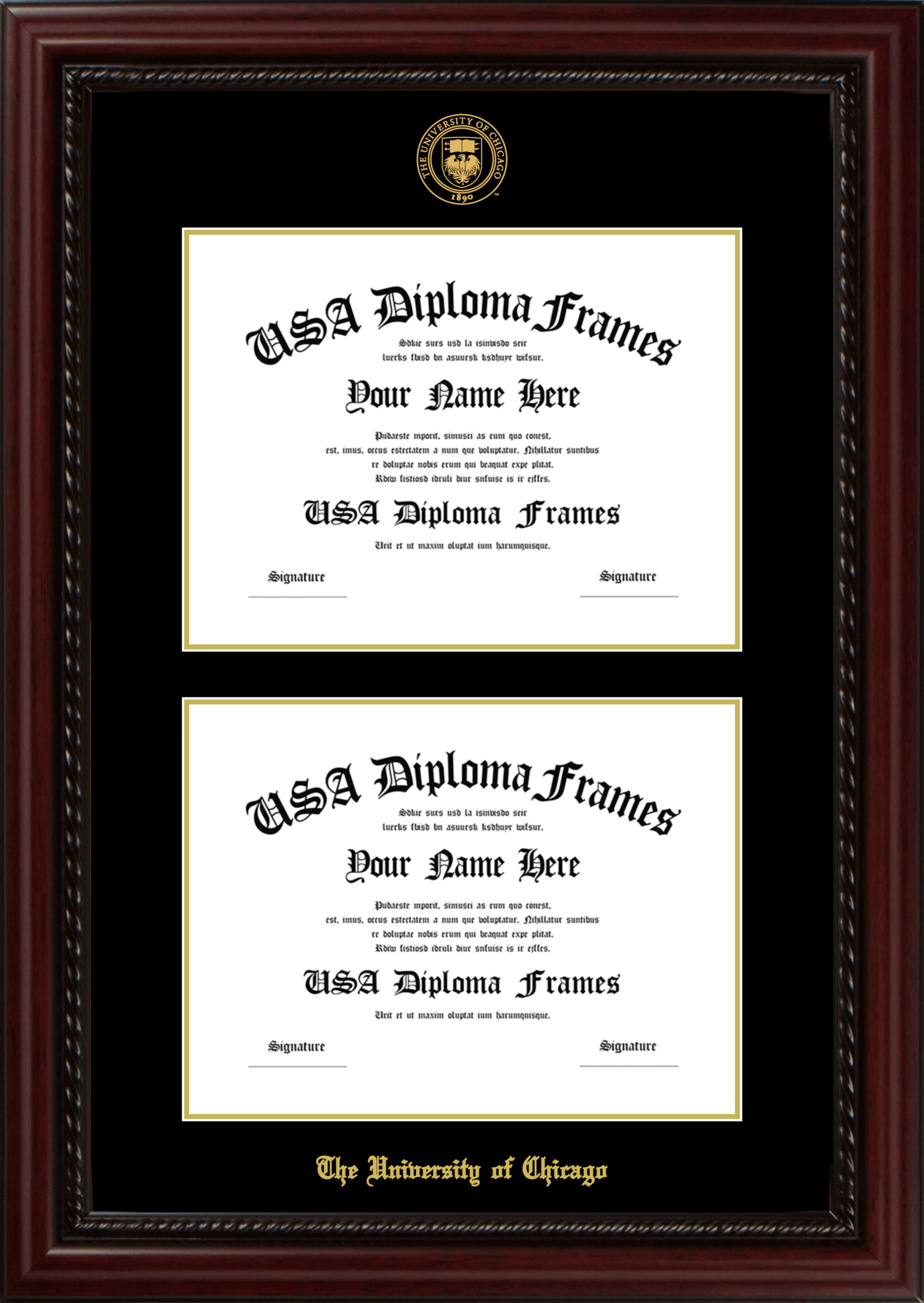 The University of Chicago Double Diploma Frame – Double Document – Executive Cherry Rope – Black and Gold Mat