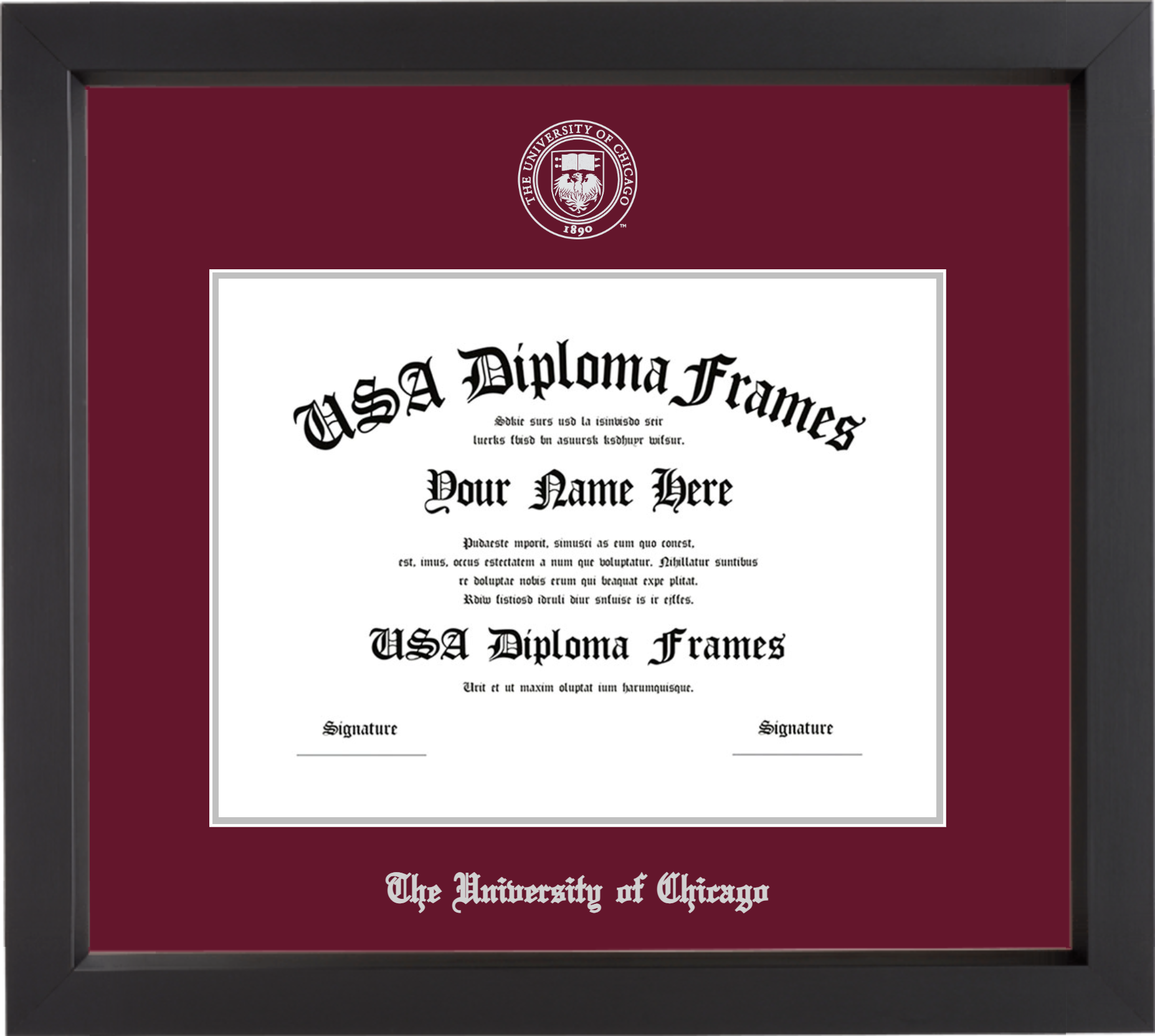 The University of Chicago – Single Horizontal Document ( Diploma ) – Black Matte – Maroon Mat – Silver Accent Mat – With Seal(University Seal Silver) – With Silver Embossing (The University of Chicago)