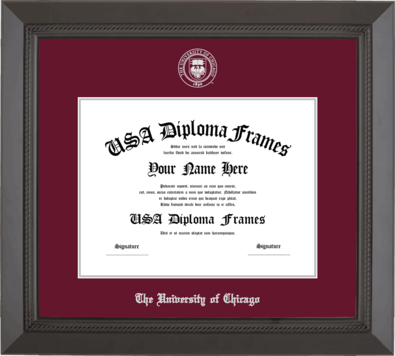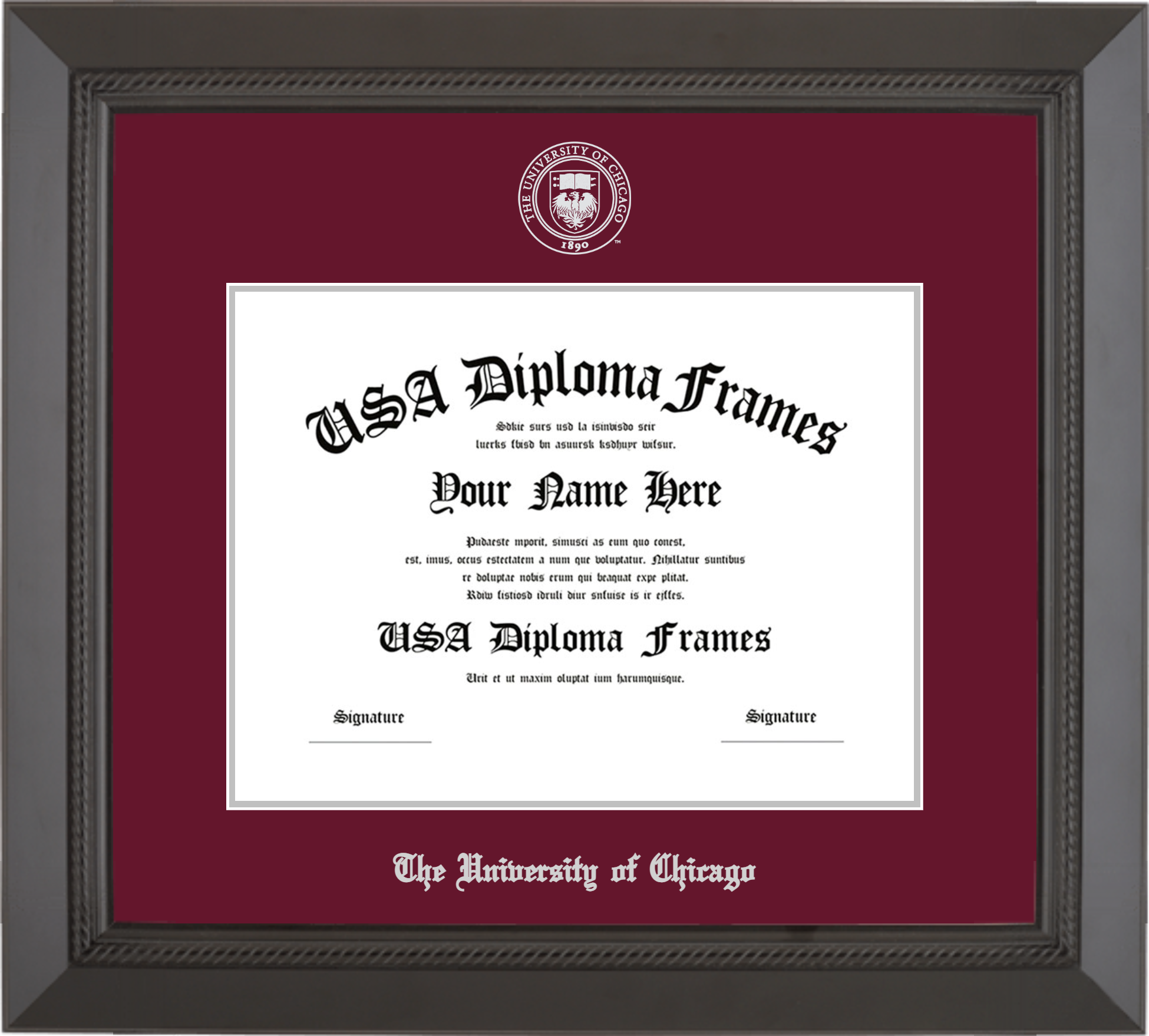 The University of Chicago Diploma Frame – Black Rope – Maroon and Silver Mat