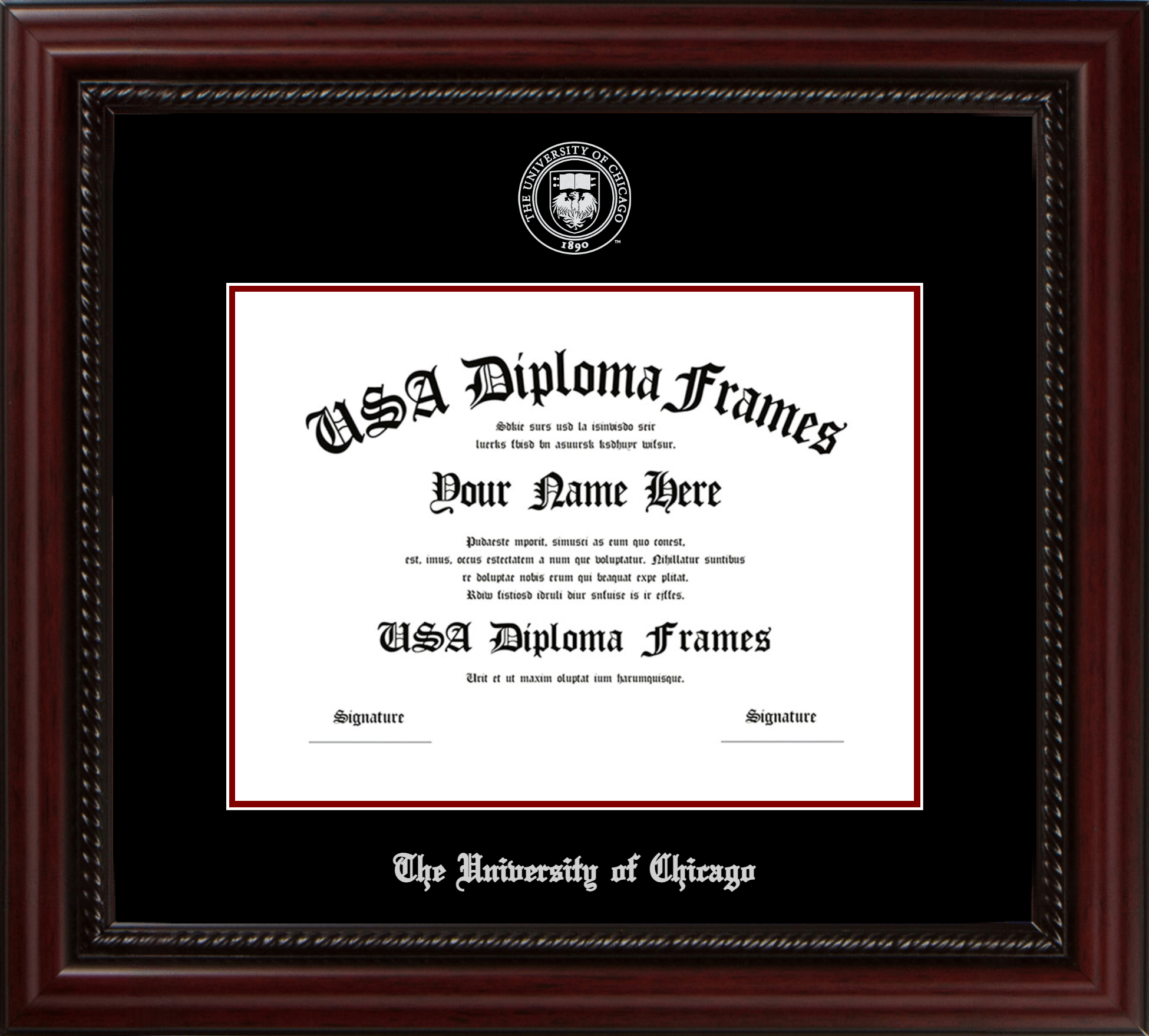 The University of Chicago Diploma Frame – Executive Cherry Rope – Black and Maroon Mat