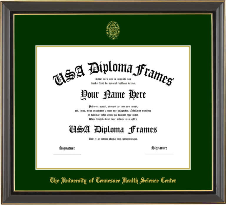 Want to explore more styles? Browse our full range of diploma frame layouts, or visit the The University of Tennessee Health Science Center to view options available for your school. Looking for a fully personalized design? Try our custom Frame Builder and create a frame that’s uniquely yours.