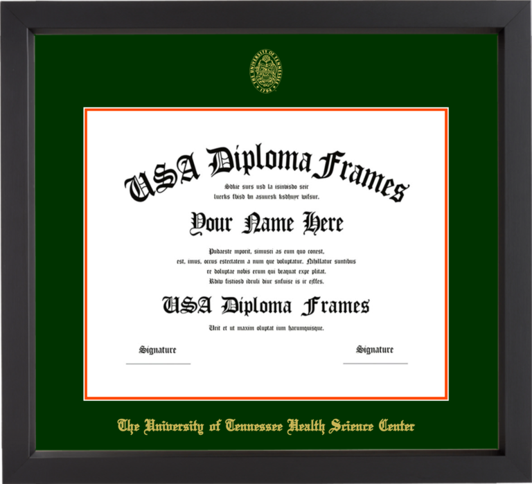 Want to explore more styles? Browse our full range of diploma frame layouts, or visit the The University of Tennessee Health Science Center to view options available for your school. Looking for a fully personalized design? Try our custom Frame Builder and create a frame that’s uniquely yours.