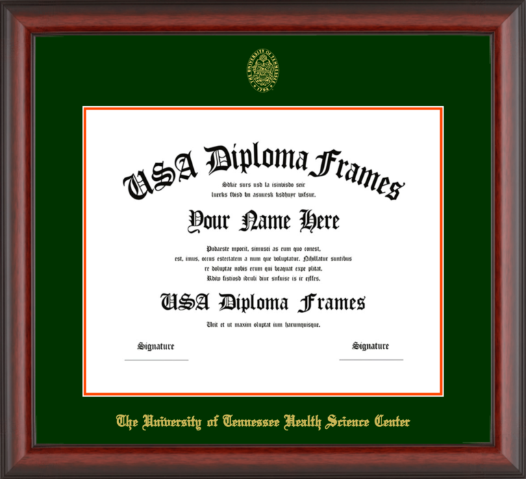 Want to explore more styles? Browse our full range of diploma frame layouts, or visit the The University of Tennessee Health Science Center to view options available for your school. Looking for a fully personalized design? Try our custom Frame Builder and create a frame that’s uniquely yours.