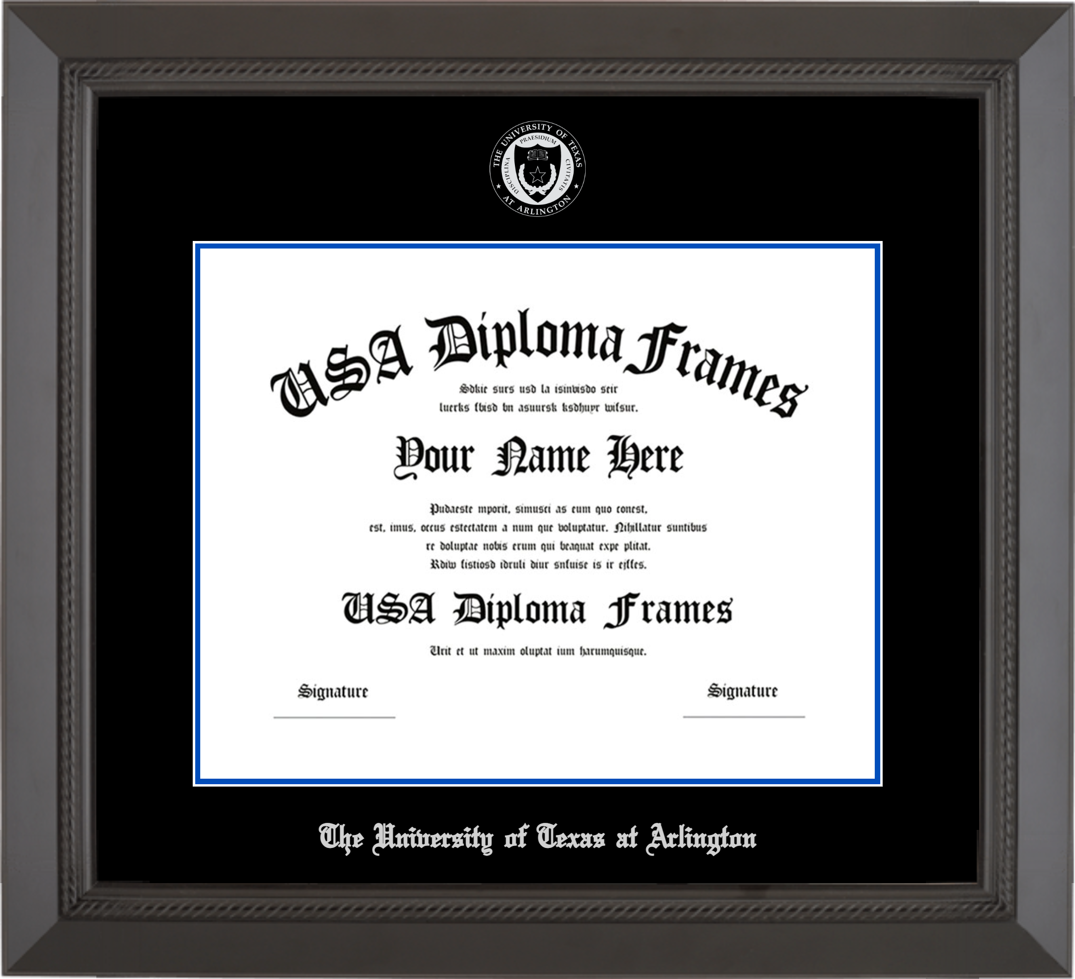 The University of Texas at Arlington Diploma Frame – Black Rope – Black and Royal Blue Mat