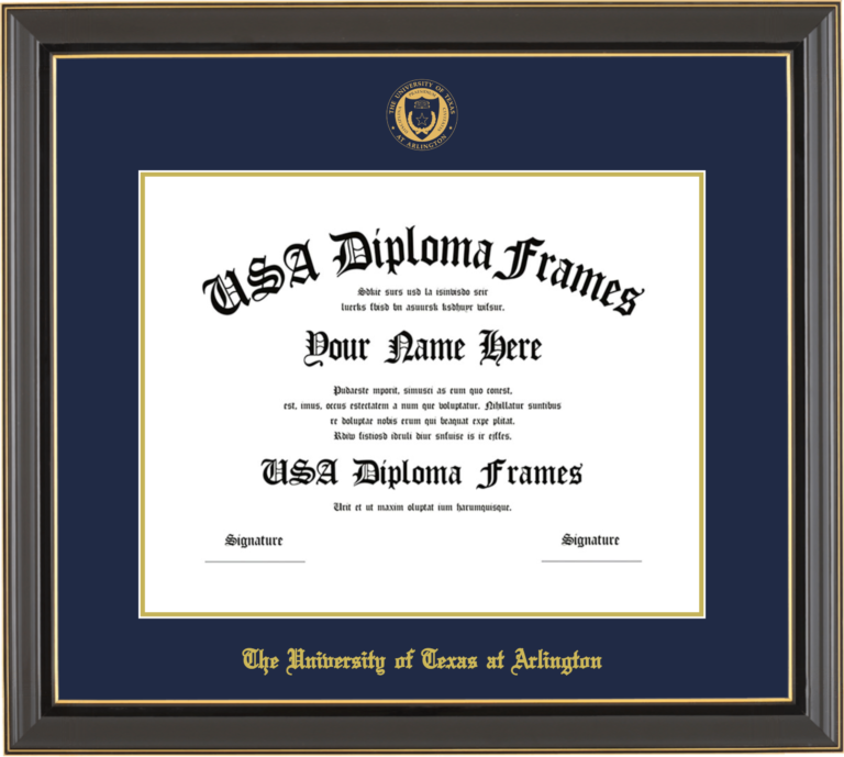 Want to explore more styles? Browse our full range of diploma frame layouts, or visit the The University of Texas at Arlington to view options available for your school. Looking for a fully personalized design? Try our custom Frame Builder and create a frame that’s uniquely yours.