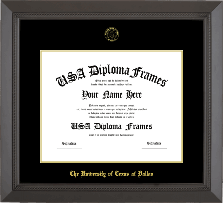 The University of Texas at Dallas Diploma Frame – Black Rope – Black and Gold Mat