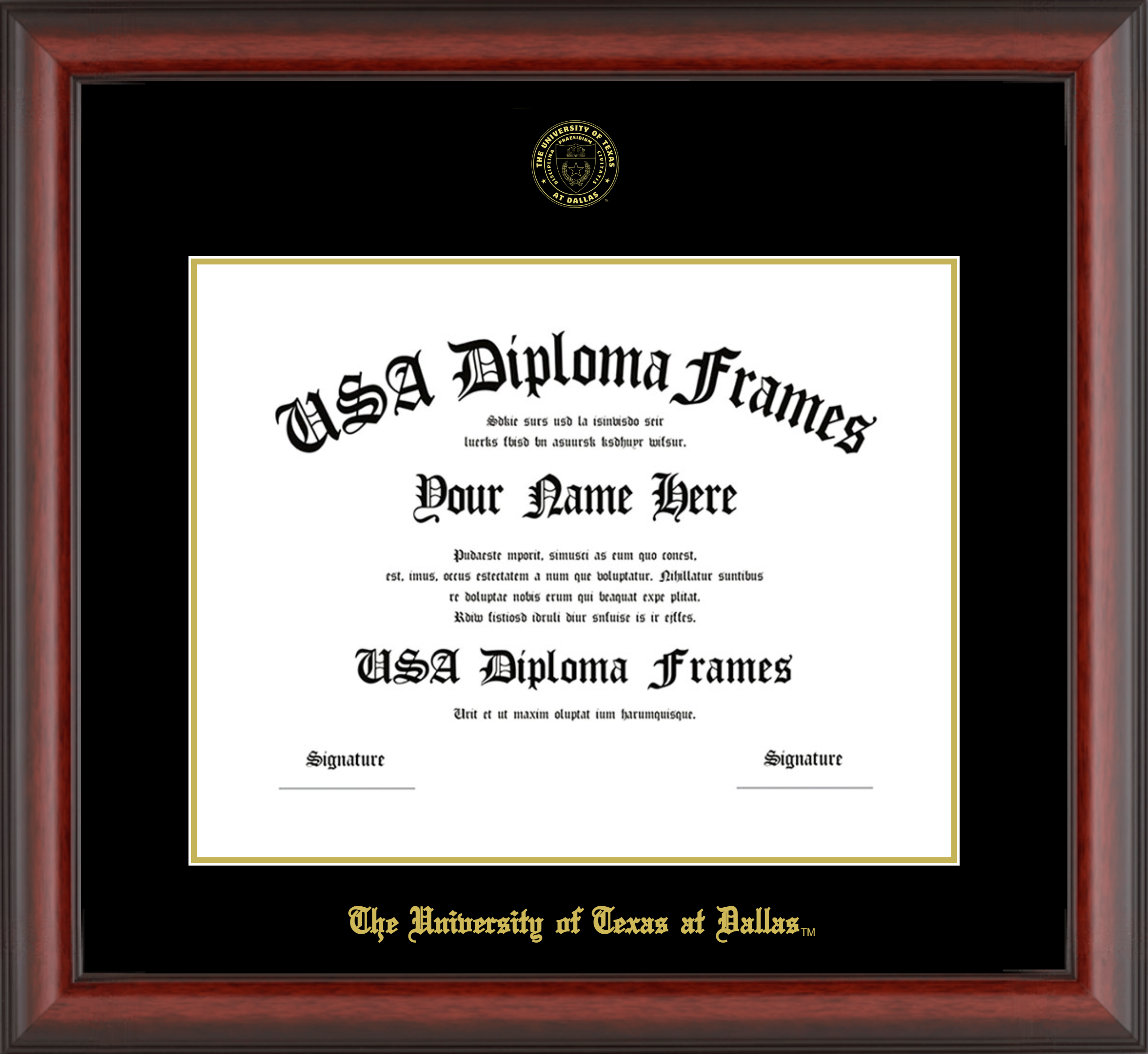 The University of Texas at Dallas Diploma Frame – Cherry Mahogany Matte – Black and Gold Mat