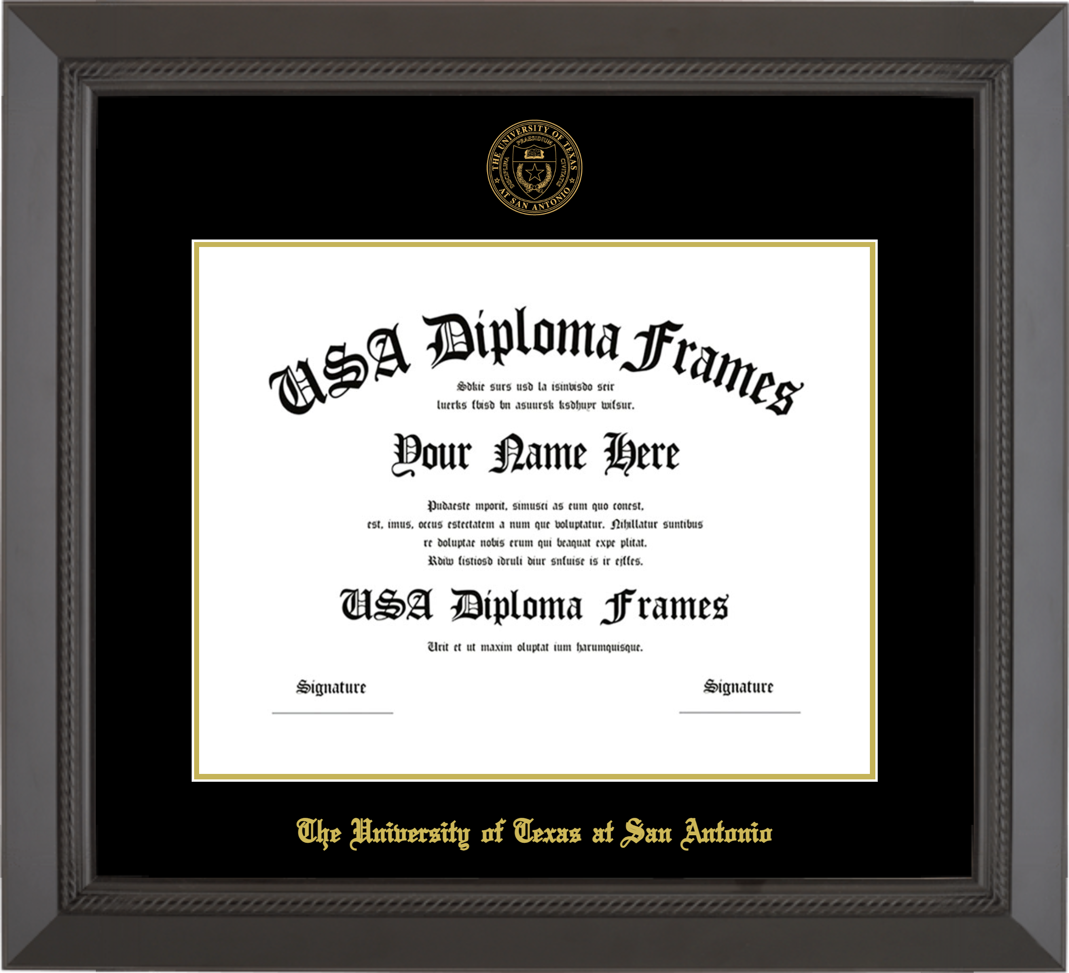 The University of Texas at San Antonio Diploma Frame – UTSA – Black Rope – Black and Gold Mat
