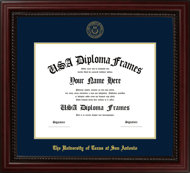 Want to explore more styles? Browse our full range of diploma frame layouts, or visit the The University of Texas at San Antonio to view options available for your school. Looking for a fully personalized design? Try our custom Frame Builder and create a frame that’s uniquely yours.