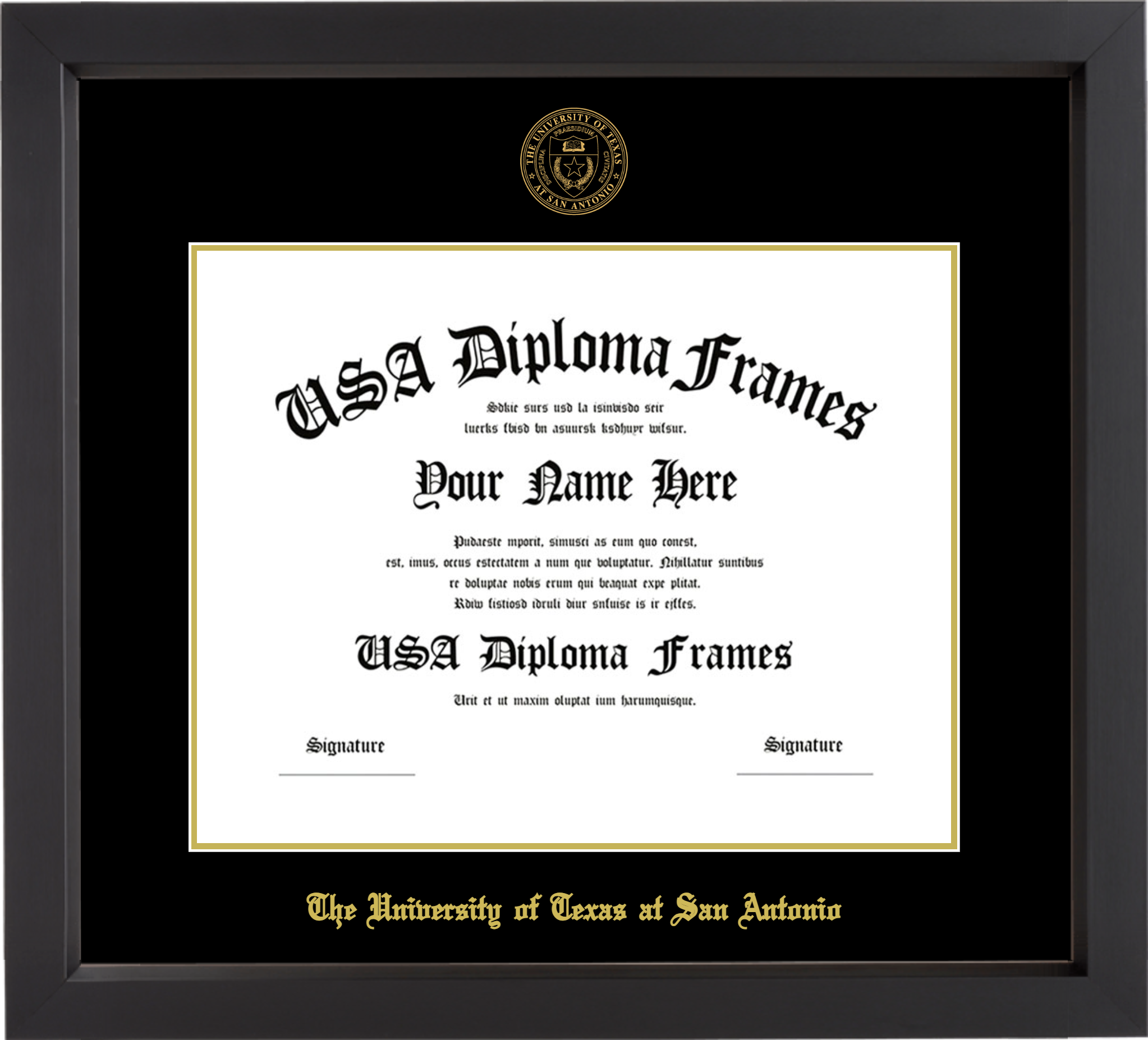 The University of Texas at San Antonio Diploma Frame – Black Matte – Black and Gold Mat
