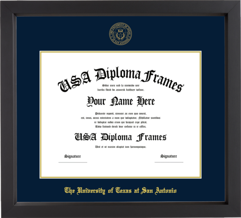 Want to explore more styles? Browse our full range of diploma frame layouts, or visit the The University of Texas at San Antonio to view options available for your school. Looking for a fully personalized design? Try our custom Frame Builder and create a frame that’s uniquely yours.
