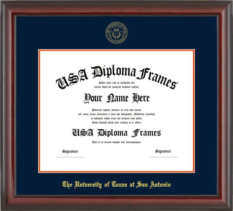 Want to explore more styles? Browse our full range of diploma frame layouts, or visit the The University of Texas at San Antonio to view options available for your school. Looking for a fully personalized design? Try our custom Frame Builder and create a frame that’s uniquely yours.