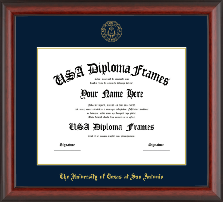 Want to explore more styles? Browse our full range of diploma frame layouts, or visit the The University of Texas at San Antonio to view options available for your school. Looking for a fully personalized design? Try our custom Frame Builder and create a frame that’s uniquely yours.