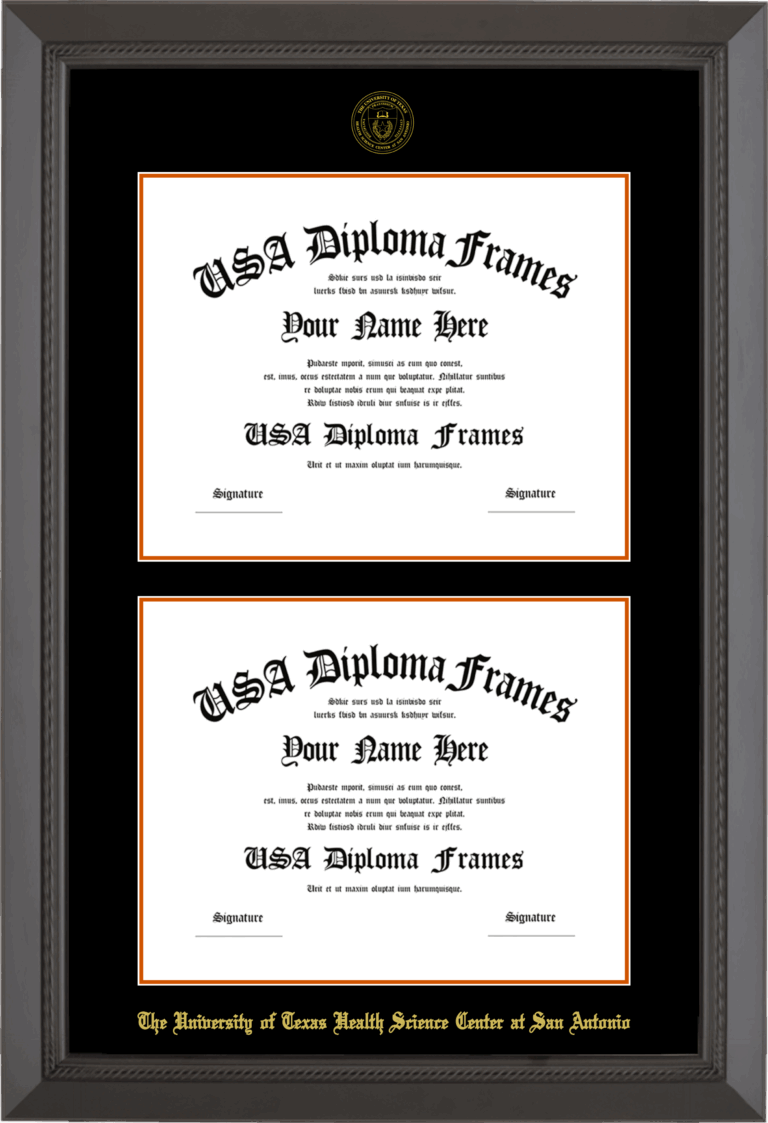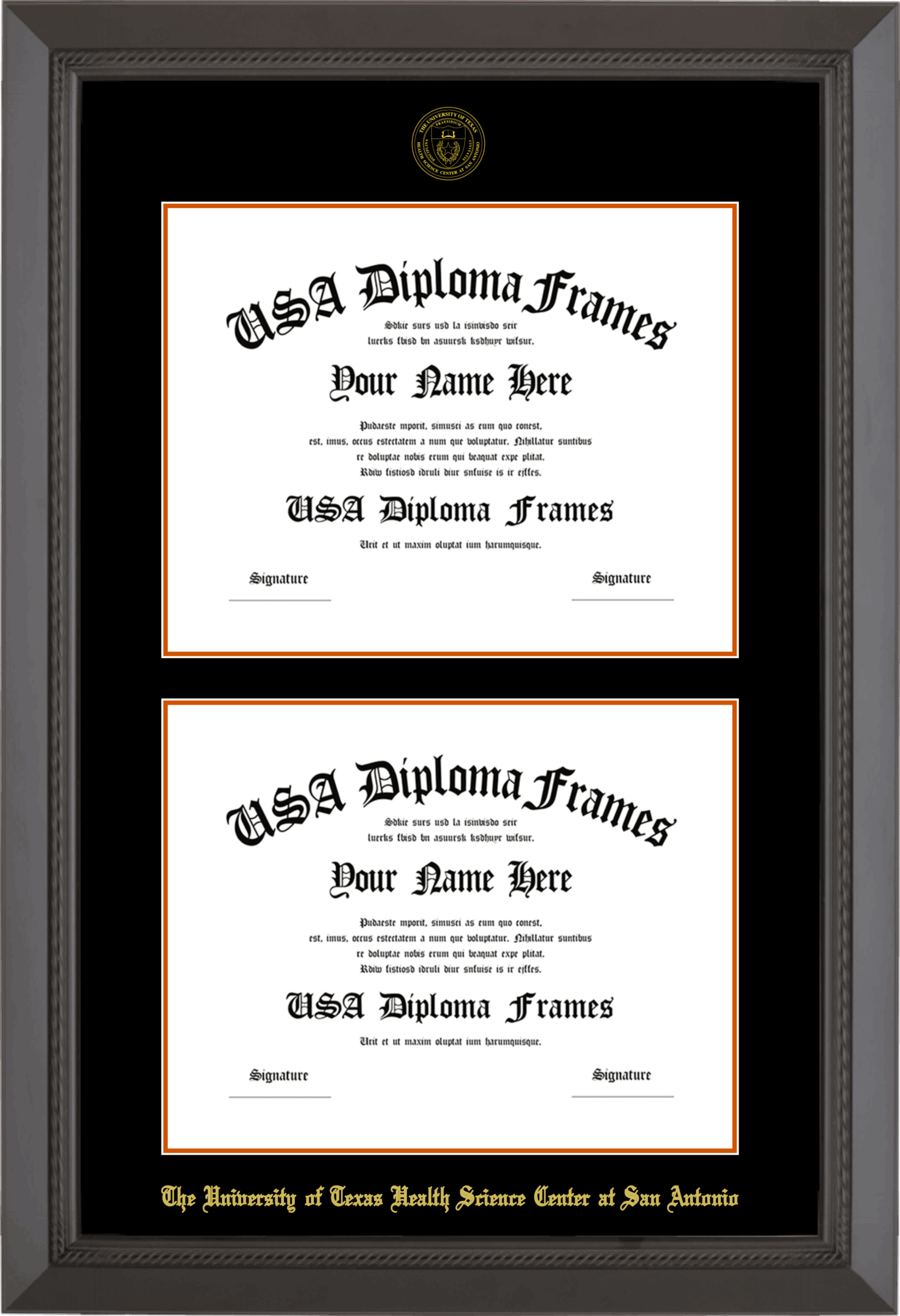 The University of Texas Health Science Center at San Antonio Double Diploma Frame – Double Document – Black Rope – Black and Burnt Orange Mat