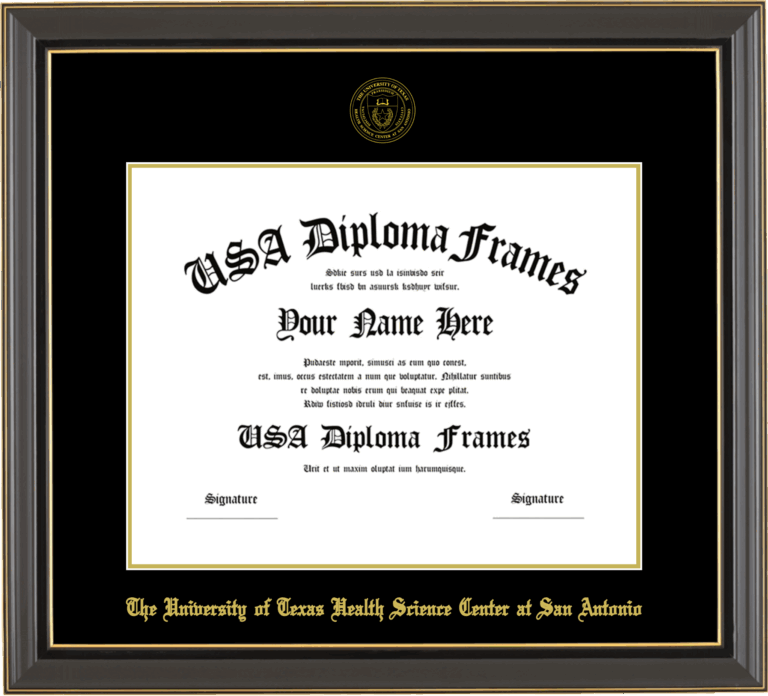 The University of Texas Health Science Center at San Antonio Diploma Frame – Black Gold Trim Glossy – Black and Gold Mat
