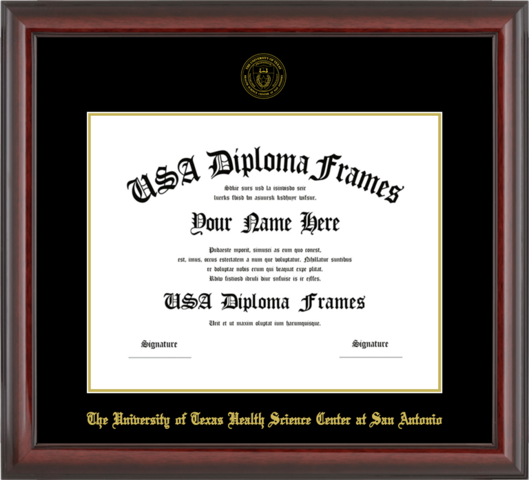 The University of Texas Health Science Center at San Antonio Diploma Frame – Cherry Mahogany Glossy – Black and Gold Mat