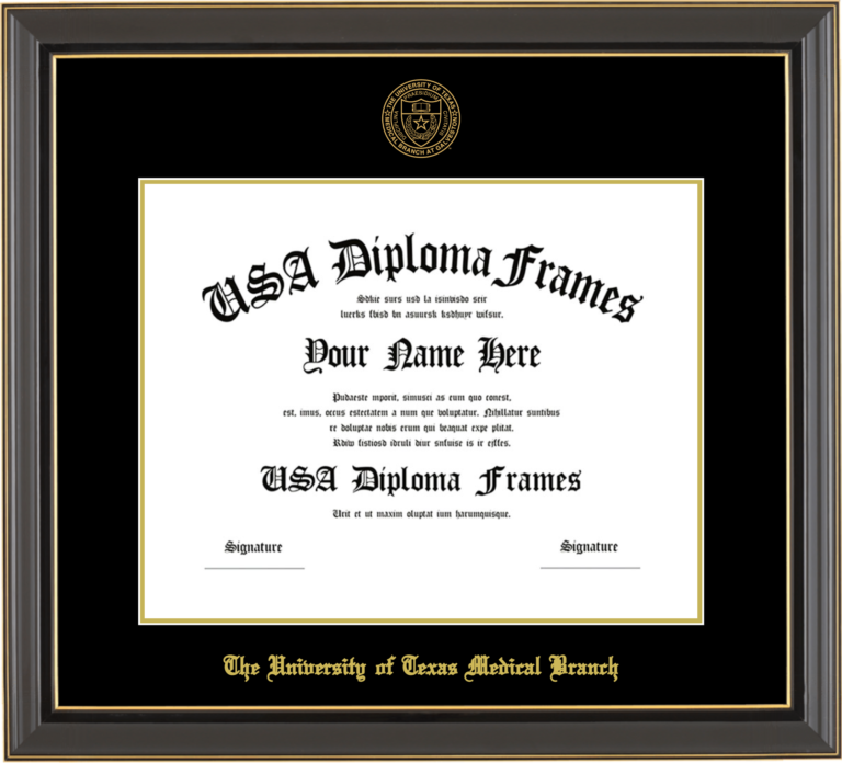 Want to explore more styles? Browse our full range of diploma frame layouts, or visit the The University of Texas Medical Branch at Galveston to view options available for your school. Looking for a fully personalized design? Try our custom Frame Builder and create a frame that’s uniquely yours.