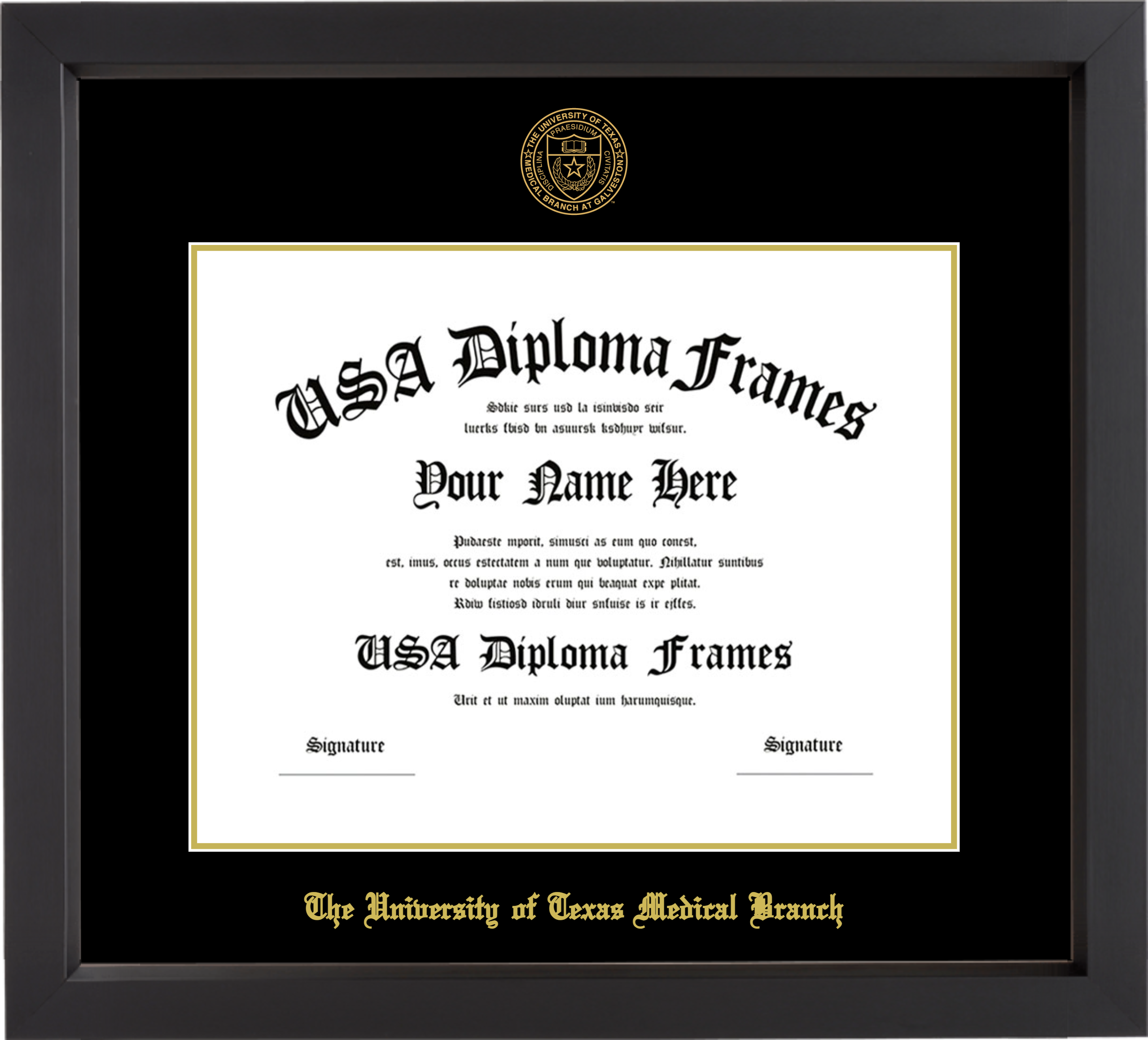 The University of Texas Medical Branch at Galveston Diploma Frame – Black Matte – Black and Gold Mat