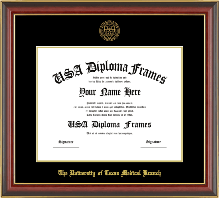 Want to explore more styles? Browse our full range of diploma frame layouts, or visit the The University of Texas Medical Branch at Galveston to view options available for your school. Looking for a fully personalized design? Try our custom Frame Builder and create a frame that’s uniquely yours.