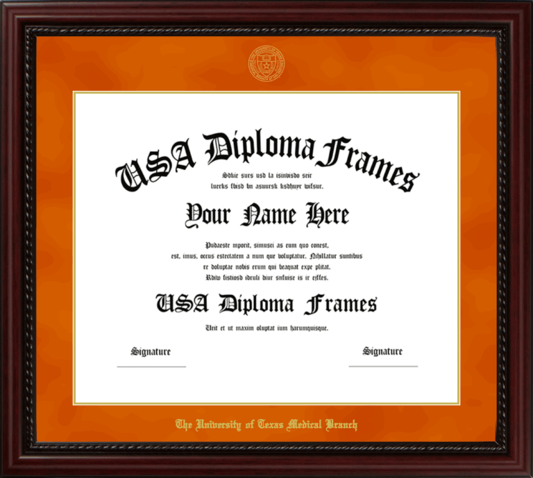 Want to explore more styles? Browse our full range of diploma frame layouts, or visit the The University of Texas Medical Branch at Galveston to view options available for your school. Looking for a fully personalized design? Try our custom Frame Builder and create a frame that’s uniquely yours.