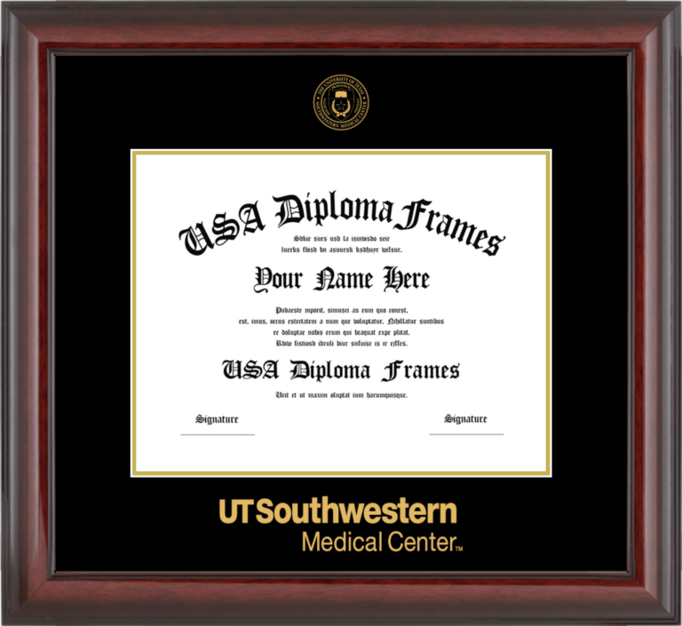 Want to explore more styles? Browse our full range of diploma frame layouts, or visit the The University of Texas Southwestern Medical Center at Dallas to view options available for your school. Looking for a fully personalized design? Try our custom Frame Builder and create a frame that’s uniquely yours.