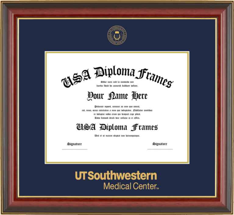 Want to explore more styles? Browse our full range of diploma frame layouts, or visit the The University of Texas Southwestern Medical Center at Dallas to view options available for your school. Looking for a fully personalized design? Try our custom Frame Builder and create a frame that’s uniquely yours.