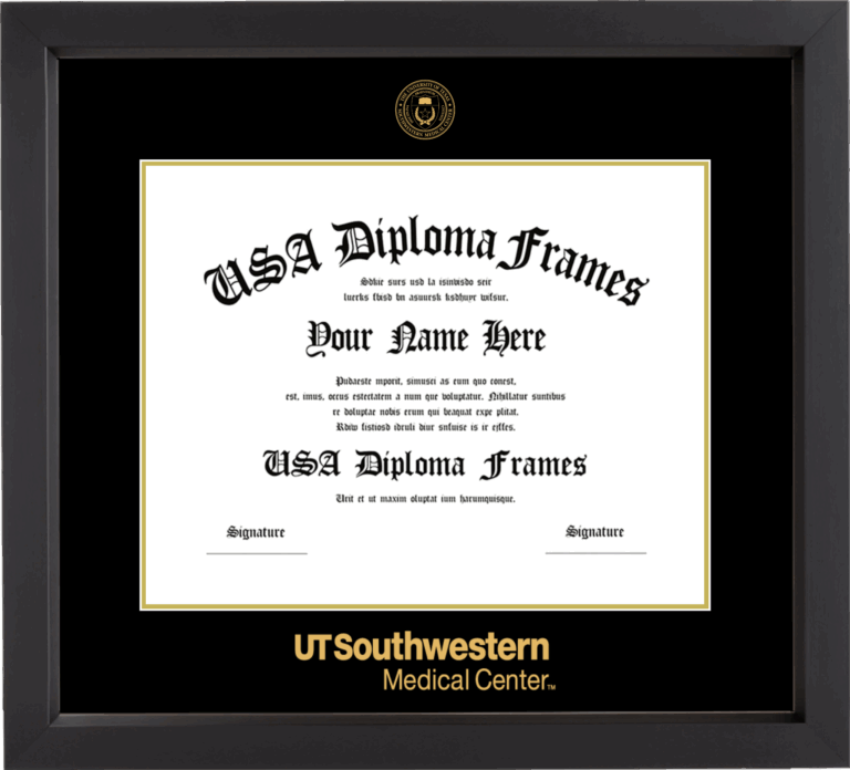 The University of Texas Southwestern Medical Center at Dallas Diploma Frame- 11×14 Master’s/PhD – Black Matte – Black and Gold Mat – UTSW