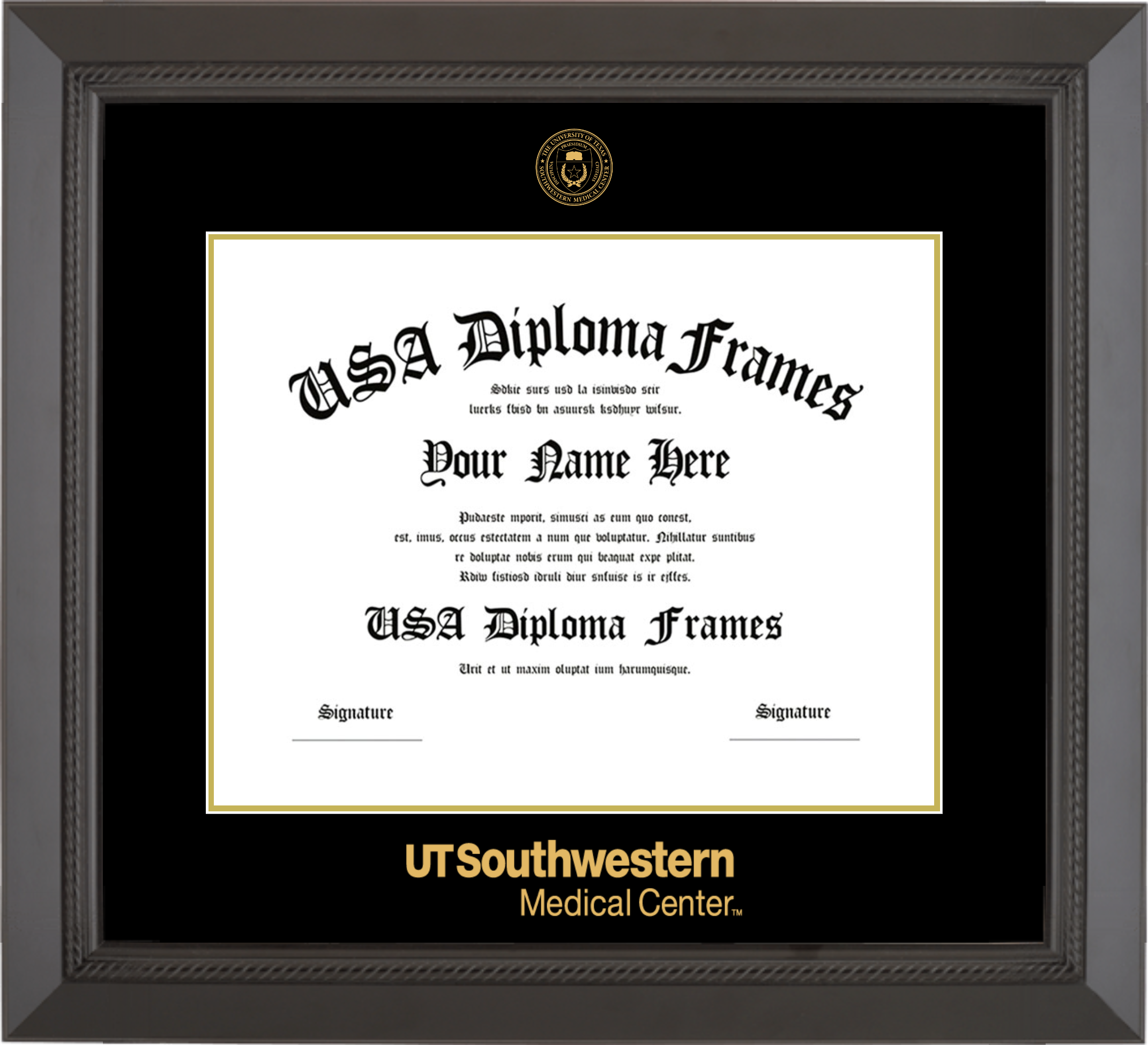 The University of Texas Southwestern Medical Center at Dallas Diploma Frame- 11×14 Master’s/PhD – Black Rope – Black and Gold Mat – UTSW