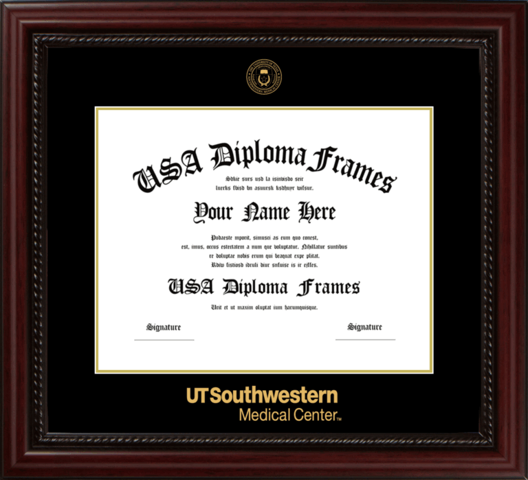 Want to explore more styles? Browse our full range of diploma frame layouts, or visit the The University of Texas Southwestern Medical Center at Dallas to view options available for your school. Looking for a fully personalized design? Try our custom Frame Builder and create a frame that’s uniquely yours.