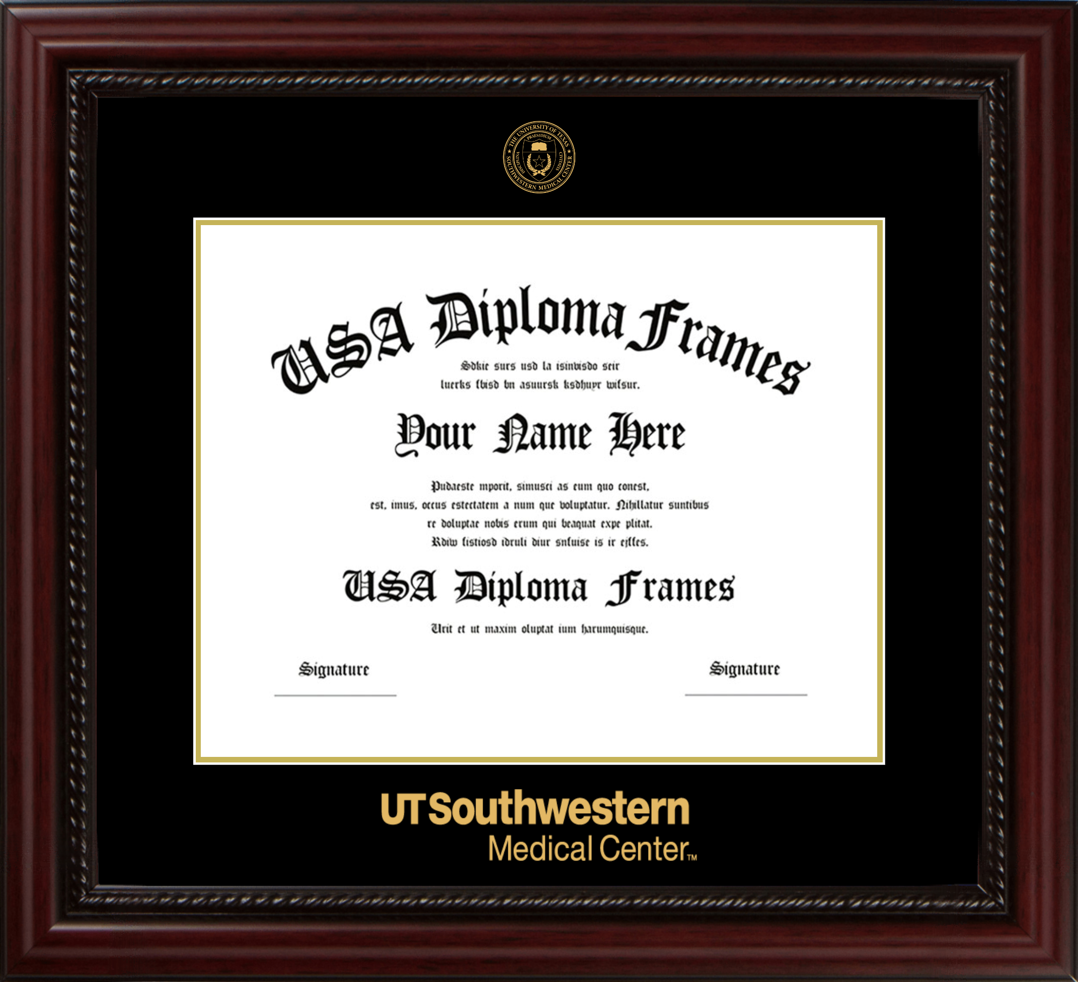 The University of Texas Southwestern Medical Center at Dallas Diploma Frame- 11×14 Master’s/PhD – Executive Cherry Rope – Black and Gold Mat – UTSW