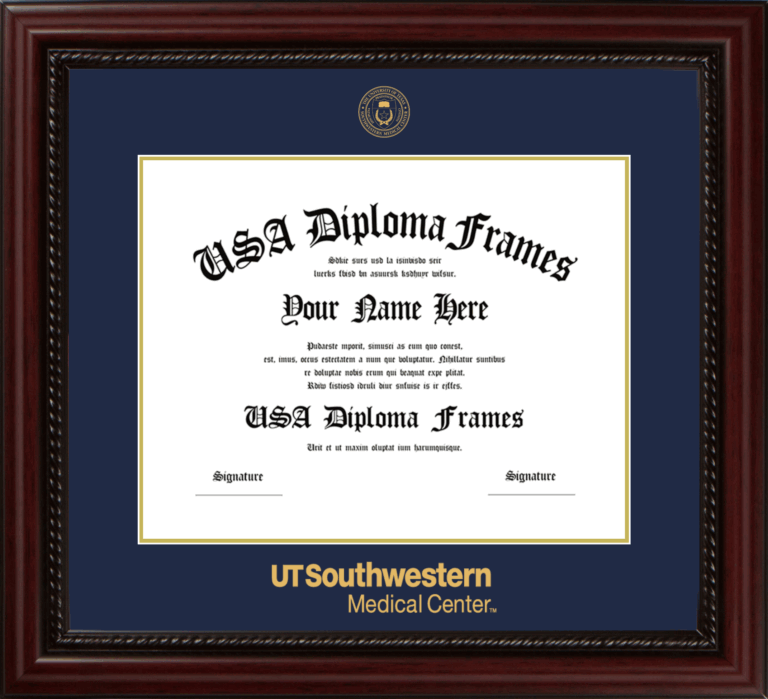 Want to explore more styles? Browse our full range of diploma frame layouts, or visit the The University of Texas Southwestern Medical Center at Dallas to view options available for your school. Looking for a fully personalized design? Try our custom Frame Builder and create a frame that’s uniquely yours.