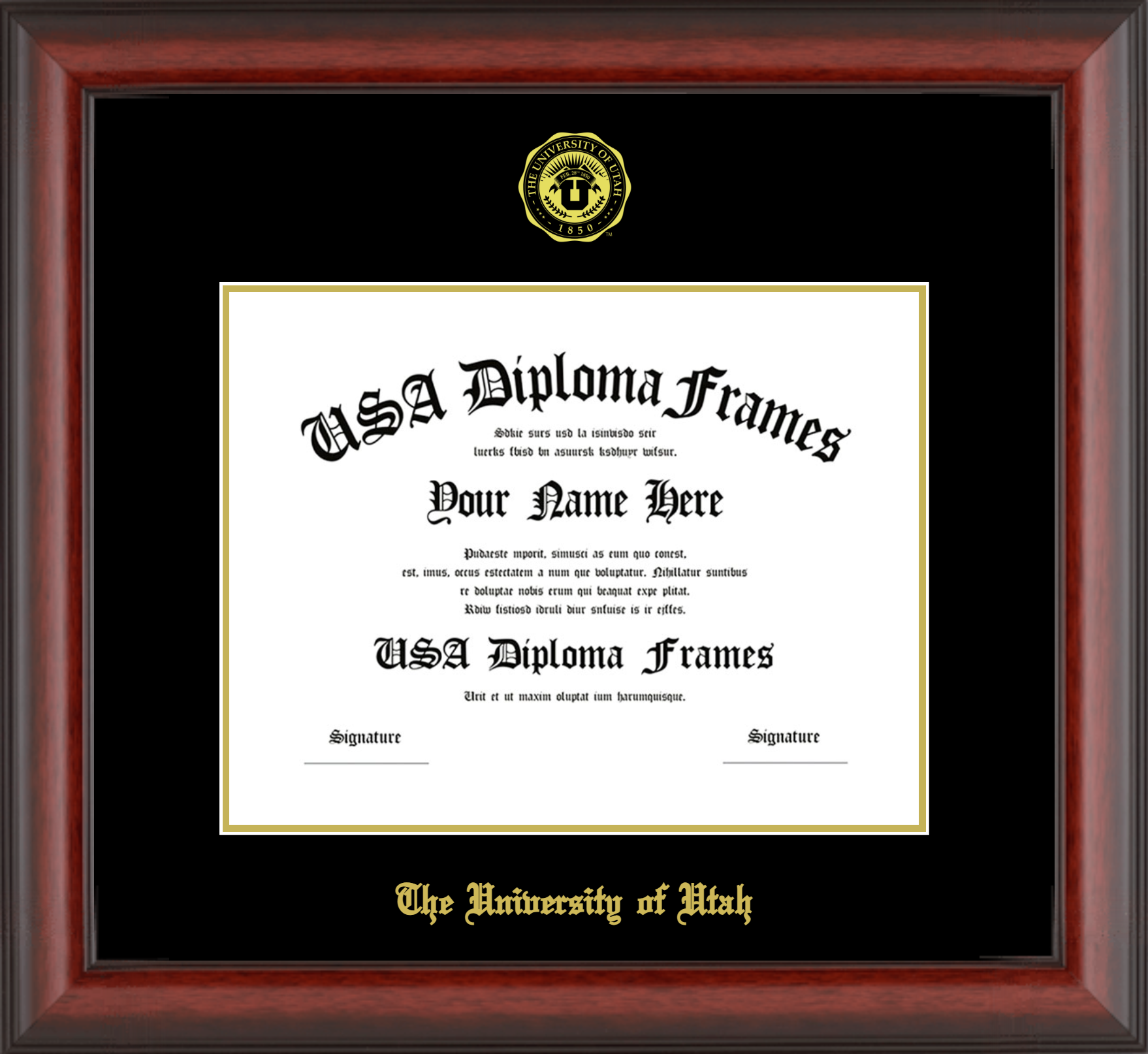 The University of Utah Diploma Frame – Cherry Mahogany Matte – Black and Gold Mat