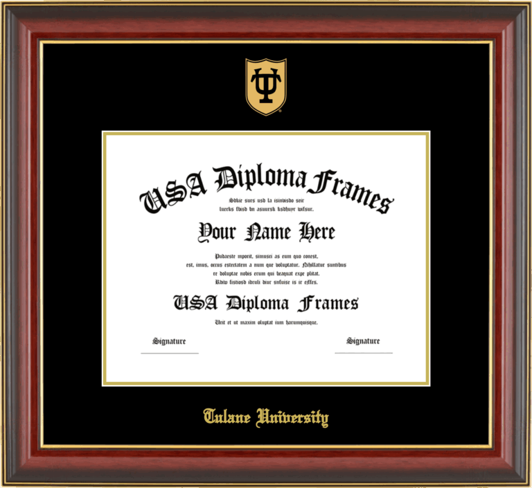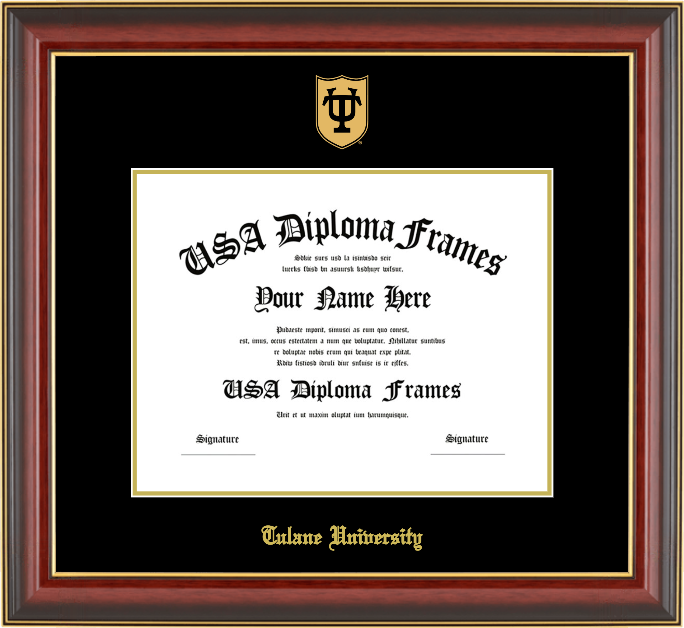 Tulane University Diploma Frame – Cherry Mahogany Gold Trim Glossy – Black and Gold Mat