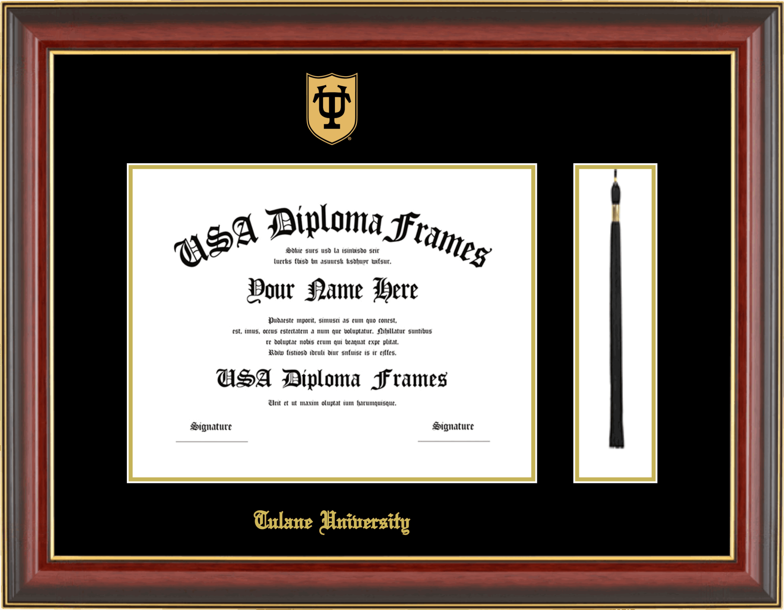 Tulane University Diploma Frame with Tassel – Cherry Mahogany Gold Trim Glossy – Black and Gold Mat