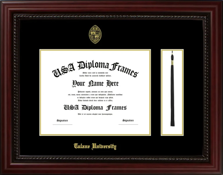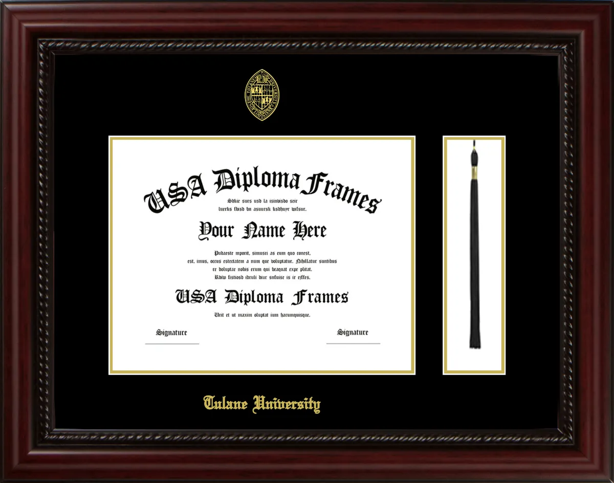 Tulane University Diploma Frame with Tassel – Executive Cherry Rope – Black and Gold Mat