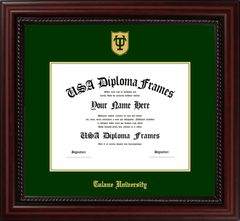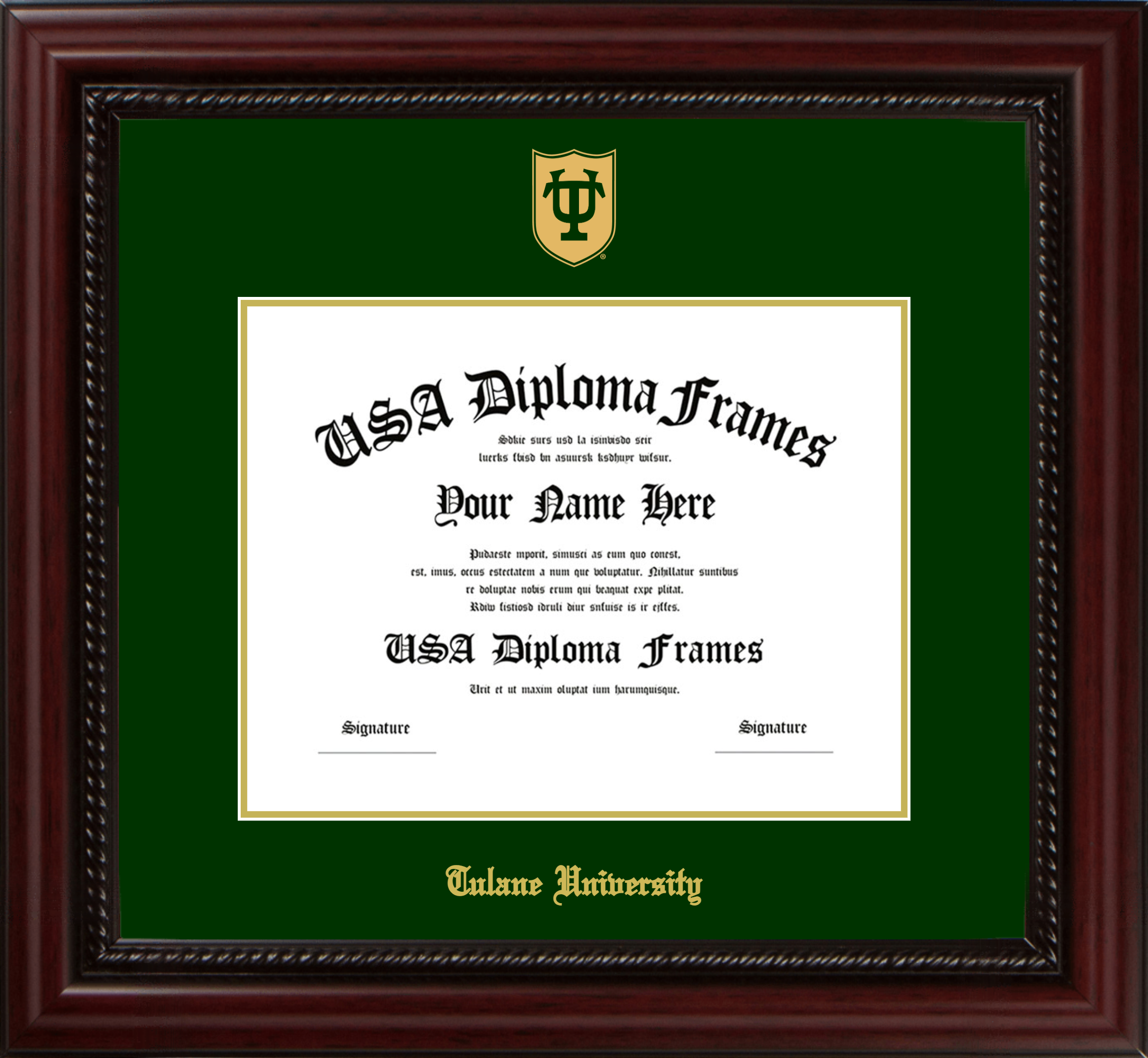 Tulane University Diploma Frame – Executive Cherry Rope – Winter Green and Gold Mat