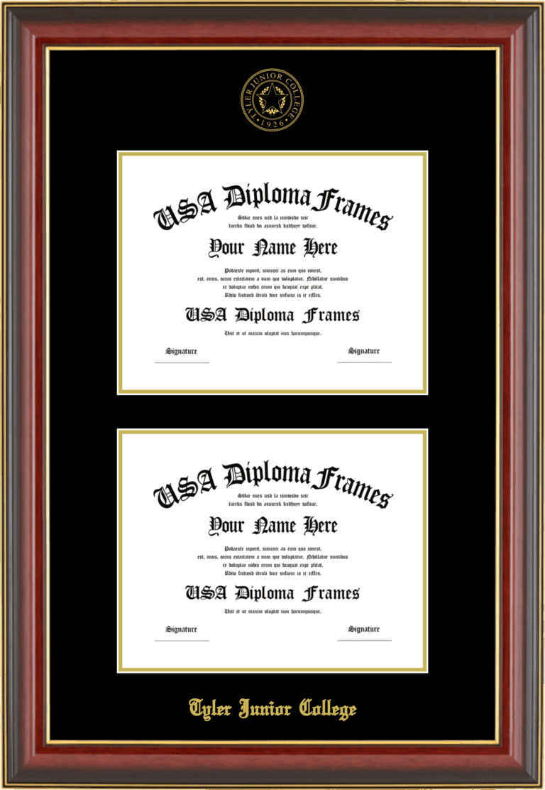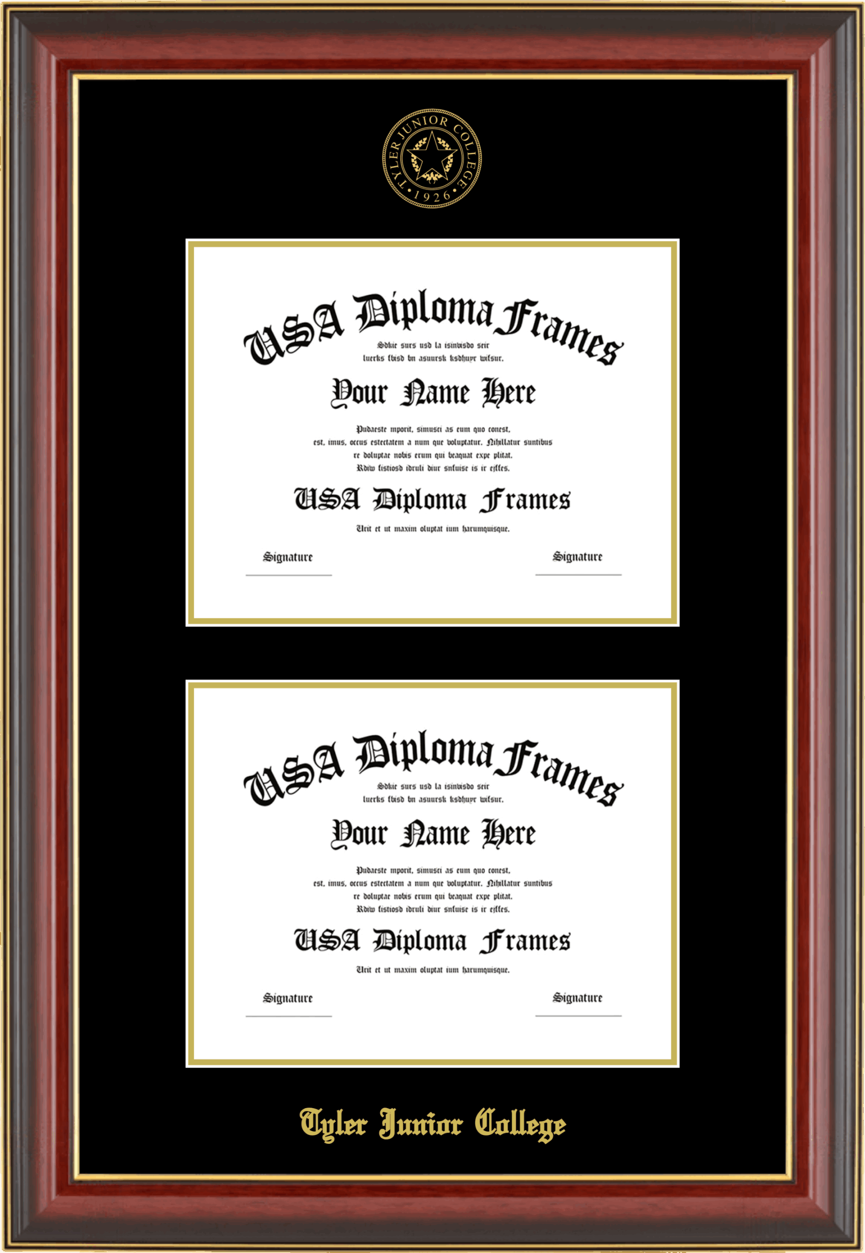 Tyler Junior College Double Diploma Frame – Double Document – Cherry Mahogany Gold Trim Glossy – Black and Gold Mat – 7×9