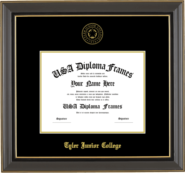 Tyler Junior College Diploma Frame – Associates 7×9 – Black Gold Trim Glossy – Black and Gold Mat