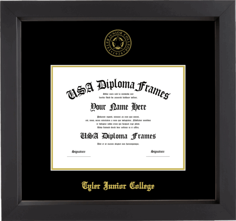 Want to explore more styles? Browse our full range of diploma frame layouts, or visit the Tyler Junior College to view options available for your school. Looking for a fully personalized design? Try our custom Frame Builder and create a frame that’s uniquely yours.