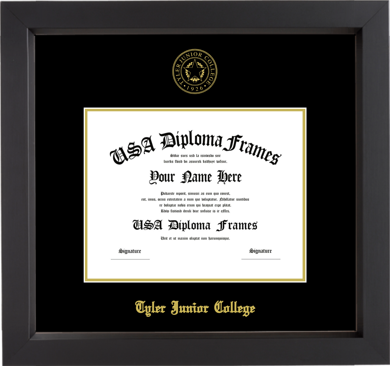 Tyler Junior College Diploma Frame – Associates 7×9 – Black Matte – Black and Gold Mat