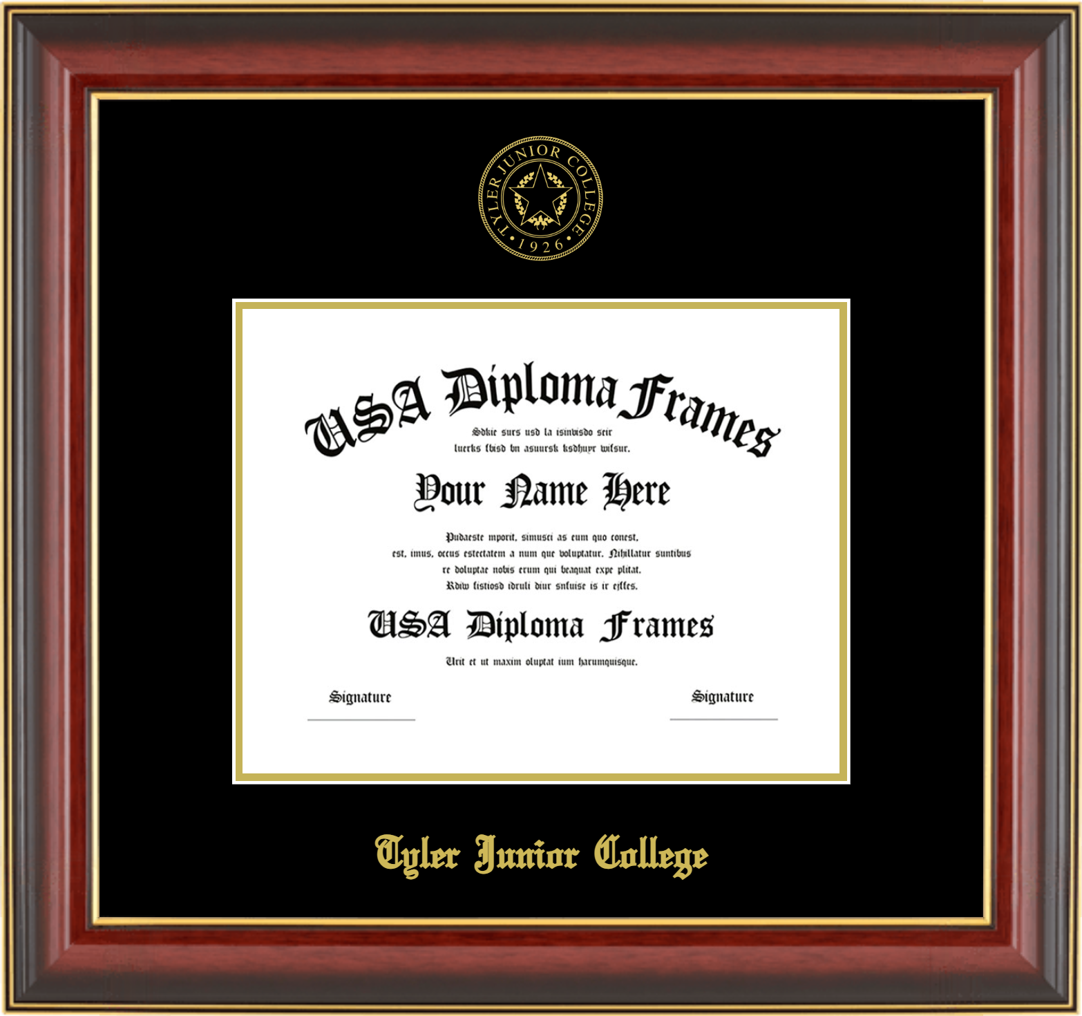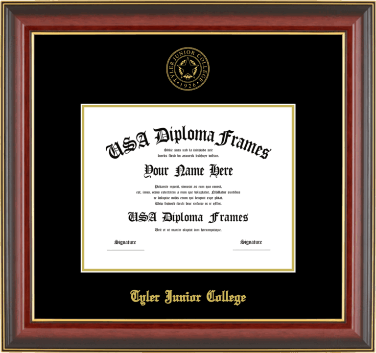 Tyler Junior College Diploma Frame – Associates 7×9 – Cherry Mahogany Gold Trim Glossy – Black and Gold Mat